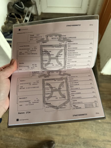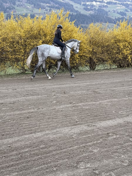 Crack HV x Baldini I x Capitol I Charlie hat einen Charakter aus Gold und ist sehr verschmust, dazu hat er eine Top Abstammung. Er ist ein lieber, junger Wallach, der unterm Sattel in allen drei Grundgangarten ganz brav läuft. Bei Fremdreitern ist er lieb, zuletzt ist er unter einem 13 jährigen Mädchen gelaufen. Er steht fein an den Hilfen und ist dabei stets lernwillig und hat nie böse Absichten. Auch im Gelände ist er für sein Alter sehr artig, man kann alleine oder in der Gruppe ausreiten, er kennt Katzen, Hunde, Schafe und Rehe. Vorbeifahrende Autos, Traktoren o.Ä. machen ihm nichts aus. Charlie ist sehr neugierig und auch mutig, manchmal braucht er aber noch etwas Sicherheit von seinem Reiter. Er wurde unter dem Sattel auch gesprungen und macht das ganz lieb, das erste Turnier ist auch schon in Planung. Durch seine Größe habe ich mir da bewusst Zeit gelassen, um ihn nicht zu überfordern. Selbstverständlich wurde Charlie regelmäßig geimpft und entwurmt, vom Zahnarzt und Chiropraktiker behandelt. Charlie ist verlade- und schmiedefromm, da er aber an den hinteren Beinen das Shivering Syndrom hat (das schränk ihn aber nicht ein), kann er beim Beschlagen hinten manchmal etwas ungeduldig werden. Er ist dabei aber nie böse und hat auch 4 Mal Eisen. Wenn man ihm also etwas Verständnis entgegenbringt, lässt er alles mit sich machen. Vorne hat Charlie eine leichte X Beine Fehlstellung, das schränkt ihn aber auch nicht ein.