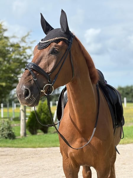 Prioritizing quality over price!!! Age: 5 years (2020) Height: approximately 17.5 hh Pedigree: Florett Ass x Limbo Training status: Successfully competed in dressage horse class A, beginning with lessons at dressage horse class L. Health: X-rays and a clinical examination from October show no significant findings. For sale is a stunning 5-year-old son of Florett Ass, boasting exceptional quality and an outstanding competition record. He impresses with an exceptional, rhythmically secure walk with significant overstep, an impressive uphill canter, and an expressive trot. He has a heart of gold, is very straightforward and well-behaved in daily training as well as at competitions. He is very nice and easy to ride. Currently, he is on his way to class L. In dressage tests of class A, he has achieved multiple wins and high placements with scores up to 8.3. He also handles cross-country riding calmly. An extraordinary young horse with excellent quality and an outstanding character. Priced below value, as he has a grade II, but this does not affect his sporting potential. A competition video can be sent via WhatsApp upon request. Phone: 0172/3423408