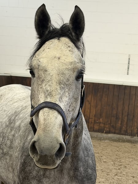 Holsteiner Gelding – Perfect Show Jumping Partner Wanted! For sale is an elegant and talented Holsteiner gelding, born in 2020. The grey impresses with his noble appearance and an impressive height of 16.1 hh. With his strong jumping talent, he is ideal for ambitious riders looking to further his training. The horse is very friendly and eager to learn in handling. His athletic build and enthusiastic jumping nature make him especially suitable. He has not been under saddle for very long. His quality and intelligence are evident when free jumping. Please feel free to contact me for more information or if you are interested. A viewing can be arranged by appointment.