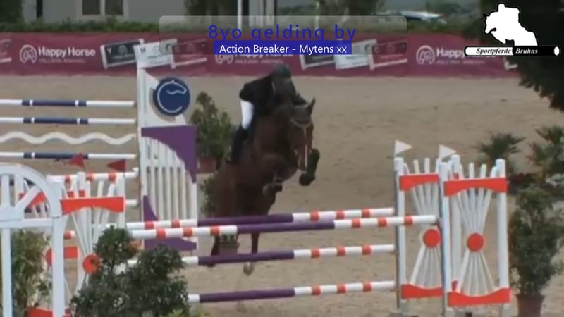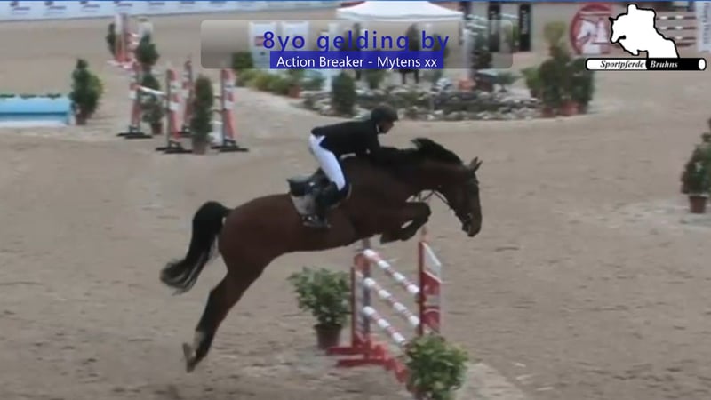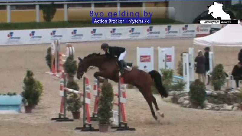 Wir bieten hier ein vorsichtiges und Vermögendes Springpferd mit Perspektive für den gehobenen Springsport. Dieser 8jährige Wallach kann bereits Erfahrungen und Platzierungen bis 1,30m Prüfungen aufweisen und ist somit eine interessante Offerte für den ambitionierten Springreiter. Recht leichtfüßig am Spring und mit dem richtigen Maß an Blut präsentiert er sich im Parcours. Der Schuss Blut findet seinen genetischen Ursprung beim Muttervater Mytens xx, sein Vater Actionbreaker und sein Großvater Heartbreaker waren dagegen zu ihrer Zeit auf sämtlichen großen Plätzen der Welt auf 1,60m-Level erfolgreich.