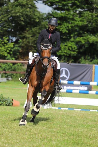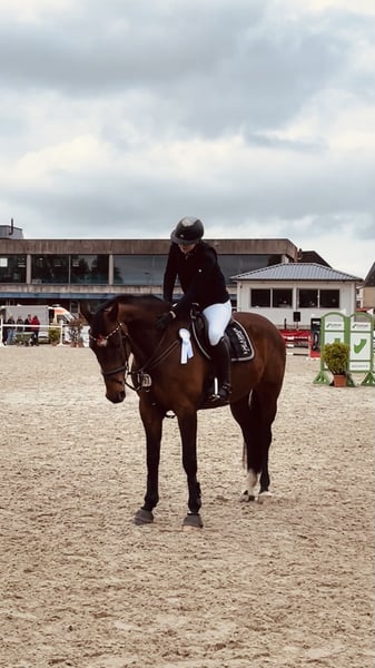 For sale is our talented and very affectionate show jumping mare with excellent pedigree, Stamm 1298 – Clarimo/Caretino/Cassini I. The mare has already competed successfully in class A jumping competitions and consistently strives to stay clear. In dressage work, she impresses with three good basic gaits. She has been trained up to level L and shows significant potential for further development. Beyond her sporting qualities, she is especially notable for her friendly and human-oriented character. She is very well-behaved, calm, and relaxed in handling. She enjoys attention, loves being pampered, and is always enthusiastic about relaxed rides in the countryside. She is also very well-behaved when it comes to the farrier and loading onto the trailer. Thanks to her rideability and talent, she is suitable for ambitious junior riders as well as for riders aiming to compete in higher jumping classes. With professional training, she can certainly further develop her potential in show jumping. Her outstanding pedigree also makes her attractive to breeders. The sale will only be made to responsible and suitable new owners, as her future well-being is very important to us. Due to lack of time, we can only dedicate ourselves intensively to a limited number of horses. If you are genuinely interested, we look forward to hearing from you. +49 162 6643833