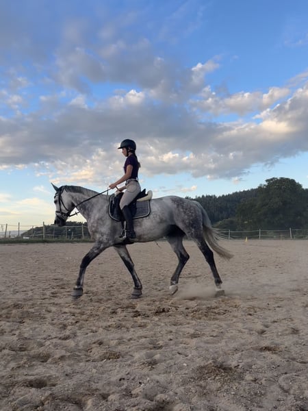 Schweren Herzens suche ich aufgrund meines Studiums für meine Stute Bianca ein neues, liebevolles Zuhause. Mir ist besonders wichtig, dass sie einen langfristigen Platz findet, an dem sie wertgeschätzt wird und einfach Pferd sein darf. Bianca ist eine 11-jährige Holsteiner Stute (ca. 166 cm) mit sehr guter Abstammung (v. Baracuda 4 x Calido I), die sich in ihrer Leistungsbereitschaft und Qualität widerspiegelt. Sie ist im Umgang sehr lieb, menschenbezogen und zuverlässig. Unter dem Sattel zeigt sie sich sensibel und fein zu reiten, weshalb sie besonders gut zu einem Reiter passt, der mit Gefühl und Ruhe arbeitet. Ausbildungstechnisch ist sie vielseitig unterwegs: Dressur, Springen und auch Vielseitigkeit kennt sie gut. Sie bringt eine solide Grundlage mit, arbeitet motiviert mit und gibt ihrem Reiter ein angenehmes Gefühl. Bodenarbeit macht ihr ebenfalls Spaß, und im Gelände ist sie brav und gelassen. Im täglichen Handling ist sie unkompliziert – sie ist verlade- und schmiedefromm und aktuell vorne beschlagen. In der Haltung kennt sie Offenstall und ist mittelrangig. Sie wünscht sich viel Auslauf, Abwechslung und idealerweise ein Leben in Herdenhaltung. Es bestehen zwei kleinere Befunde, die sie aktuell nicht einschränken. Weitere Infos dazu gebe ich gerne im persönlichen Austausch. Bianca ist eine tolle Partnerin für jemanden, der ein sensibles, zuverlässiges und vielseitiges Pferd sucht und Freude an einer feinen Zusammenarbeit hat. Standort: 78166 Donaueschingen Sehr gutes, hochwertiges Equipment (inklusive 2 angepasste Sättel) würde ich natürlich mitgeben. Ich freue mich sehr über Nachrichten, um zu schauen, ob Bianca zu euch passen könnte. Liebe Grüße Sarah