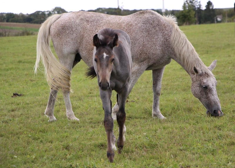 À vendre : Jument Holsteiner, née en 2010, d’un gris moucheté élégant, mesurant environ 165 cm Mr Blue par Creeol par Orthos