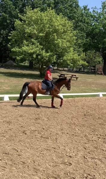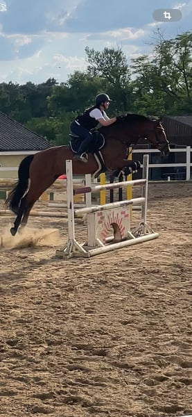 Nous vendons notre jument Holsteiner de 16 ans, issue de Nekton x Calando, à contrecoeur. C'est une cheval exceptionnellement honnête, fiable et courageux, à qui l'on peut confier n'importe quel cavalier sans hésitation. Son caractère est son plus grand trésor : elle ne regarde pas, reste calme et sereine en toutes circonstances, et accepte tout avec patience. Que ce soit en extérieur, sur le manège, en salle ou même sans selle, elle reste toujours amicale et équilibrée. Elle porte également les enfants en toute sécurité et avec patience ; elle n'est jamais méchante et aime le contact humain. Son passé sportif est aujourd'hui secondaire, mais il témoigne de sa maîtrise et de sa confiance en elle. Elle a été entraînée au saut d'obstacles jusqu'au niveau S et a obtenu des classements jusqu'à M**, en plus d'avoir été présentée en dressage jusqu'à A*. Important : en saut, elle nécessite un cavalier expérimenté. Elle aborde les petits obstacles fixes et les éléments de terrain avec calme et sans hésitation. Pour son avenir, nous souhaitons lui offrir un foyer où elle sera principalement aimée et pourra profiter de sa vie comme cheval de loisir et de famille. Nous ne poursuivons plus d'objectifs de compétition — ce qui compte, c'est de belles randonnées, du temps partagé et une vie harmonieuse. Un placement chez une famille, auprès d’adultes ou d’enfants sous supervision, serait idéal. Elle pourrait aussi convenir à la reproduction, ayant déjà eu un poulain. Elle est en bonne santé, facile à manipuler, ferrée et débourrée, et a été régulièrement suivie par un ostéopathe et un vétérinaire dentaire. Tous ses papiers sont en règle. C’est un cheval de cœur, rare à trouver, et nous espérons rencontrer des personnes qui sauront apprécier cette qualité. Pour plus d’informations et vidéos, n’hésitez pas à nous contacter. Priorité au placement, pas au prix !!!
