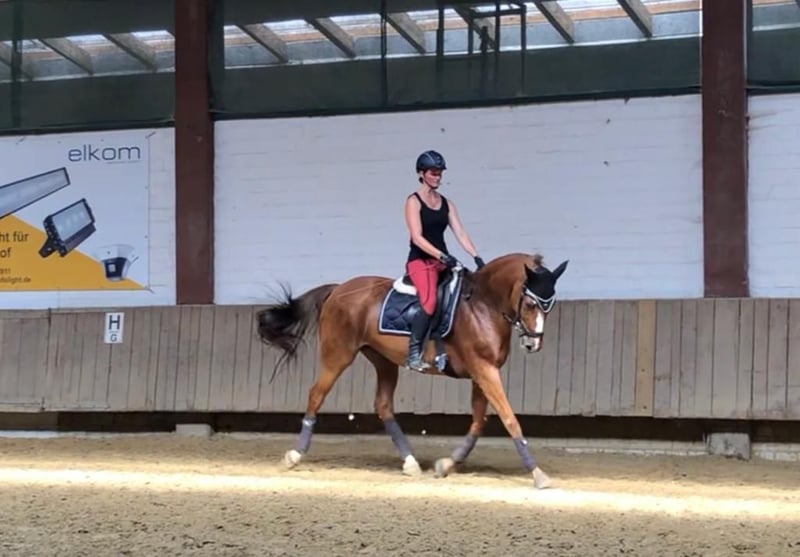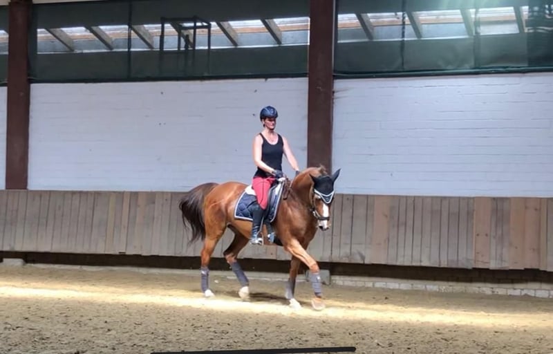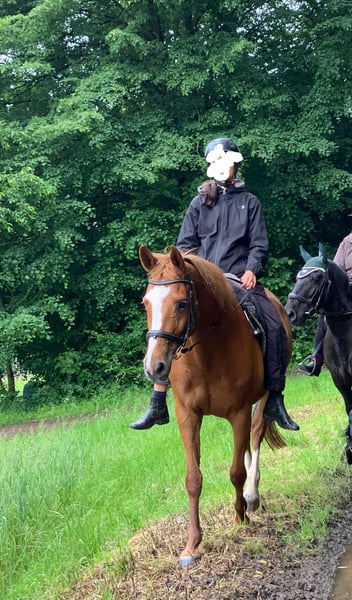 Safe horse / extremely affectionate / people-oriented / very well trained / excellent pedigree For personal reasons, we are reluctantly selling our mare Cindy. She is a true gem in handling with her rider and with other horses (low in rank). She has no vices, is fit, and has an extremely sweet and calm character. She has been very well trained in dressage and jumping, but she is primarily ridden as a leisure horse with us. She loves trail rides (absolutely unflappable) and also enjoys working in the arena above all. Cindy is very well suited for children, teenagers, and people who have riding experience and want to expand it at an advanced level. - Home before price - Cindy is kept in a paddock with daily turnout, and we wish for this to continue for her. We will only place her with a protection contract and to individuals for whom love for animals comes first.