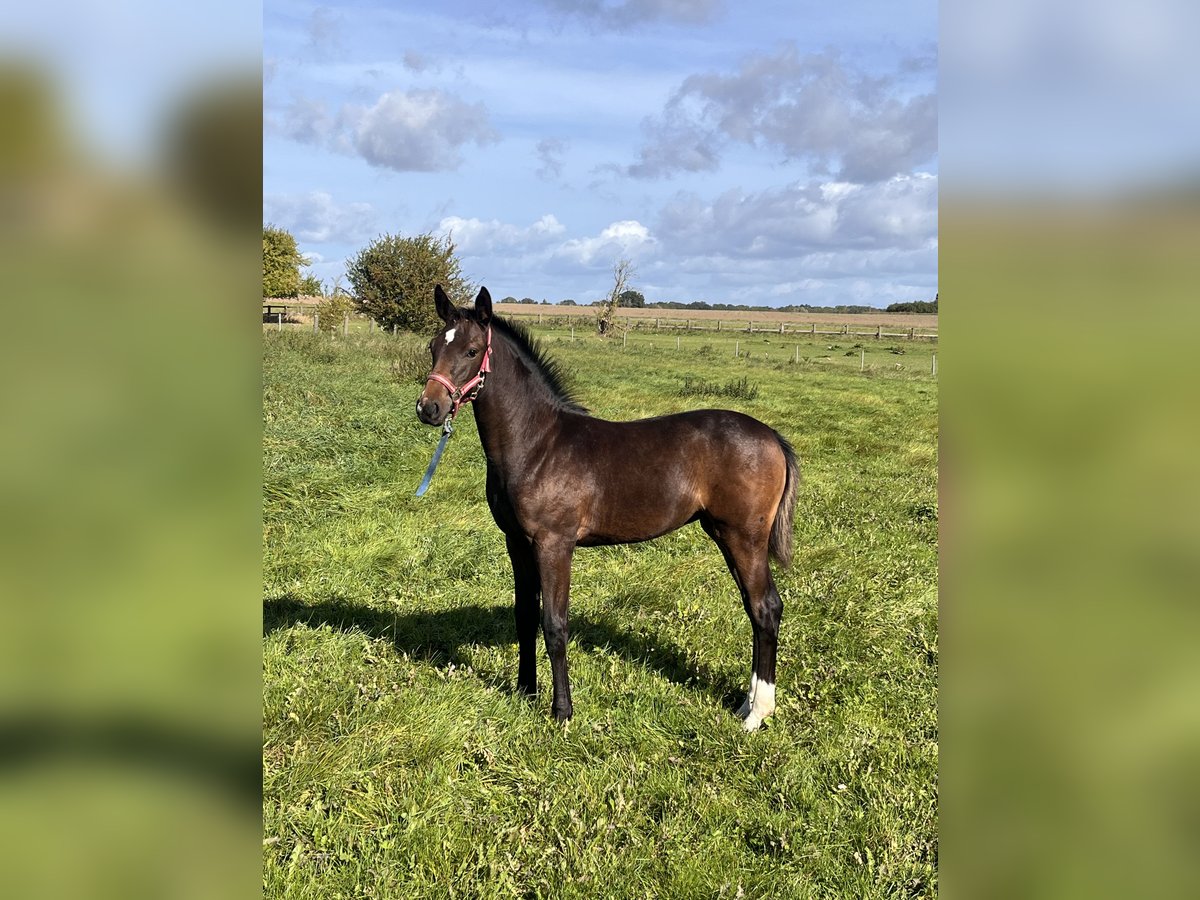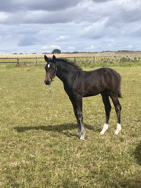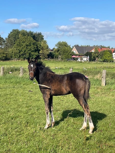 Typical and modern filly by Zirocco Blue x Diarado x Carthago x Quidam de Revel from the proven Holsteiner mare line 18B1. The dam line has already produced numerous licensed stallions and sport horses: MMM Ella is the mother of the licensed stallion Constant in Holstein. She also produced the mares Palisa and Ulla V when paired with the stallion Cor de la Bryère. Palisa herself competed at S-jumping level and is the mother of the successful sport mare Queen Liesa (Quidam de Revel) under Felix Haßmann. The full sister to Constant, Ulla V, is the mother of two licensed stallions in Holstein, foremost among them Quantum. Additionally, MM U-Cartana MS has already produced a licensed stallion in Zangersheide. The foal is only offered to the very best, supportive hands due to her quality. For serious inquiries, please contact me by phone: 0174/1724979.