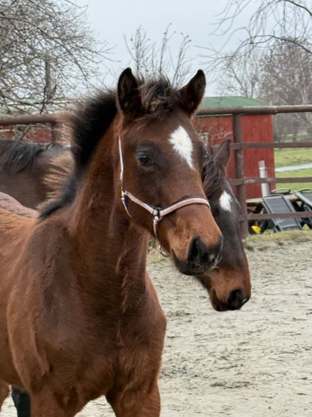 Wir suchen für unsere hübsche Jährlingsstute Tinkerbella ein neues Zuhause. Sie stammt ab von dem Holsteiner Hengst United Way aus einer Mutterstute von Nekton x Cesano II Ihre Mutter ist selber bis Springpferde A und L auf Turnier vorgestellt worden. Die Halbschwester der Mutter ist bis S Springen erfolgreich auf dem Turnier unterwegs. Der Vater United Way ist in aller Munde und bis in den hohen Sport erfolgreich! Tinkerbella kommt direkt vom Züchter und hat liebevoll das Fohlen ABC gelernt. Sie ist Halfterführig, kennt Putzen und liebt es zu kuscheln. Der Preis ist selbstverständlich verhandelbar, wir wissen alle um die aktuelle Marktlage, trotzdem verschenken wir sie nicht! Es muss einfach passen!