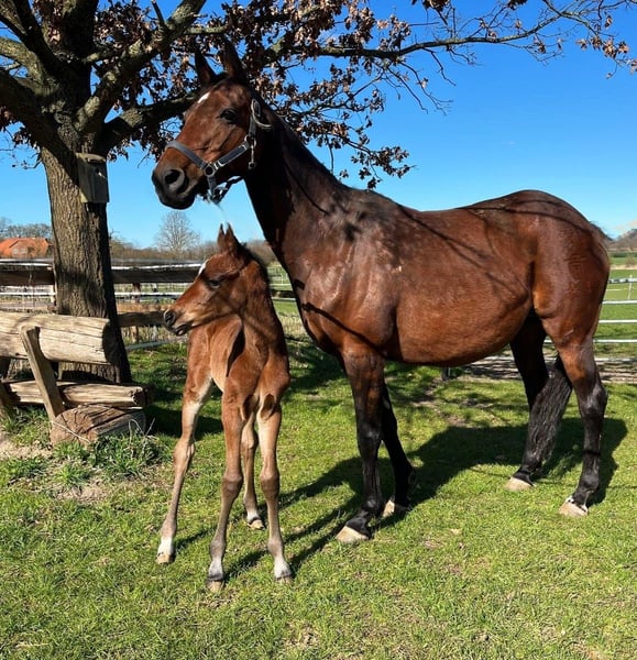 Typical filly for sale from successful mare line 6788. Thalea was born on April 5, 2025, and is out of the full sister to Carjatan S (Clearway x Galant Vert xx), who was part of the Olympic Games 2024 and the World Championships 2022 under Christoph Wahler. Thalea is lively, curious, and confident in handling. She is currently learning the basics of being a foal. She is correctly built. A transfer is possible after weaning. We wish for Thalea a loving and supportive home with a view towards a sporty future. If you are interested, we look forward to receiving a message or a call. CONTACT: Romy Köster Tel.: +49 176-72206899 E-Mail: romy_hinz_reese@yahoo.de
