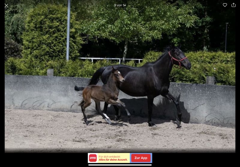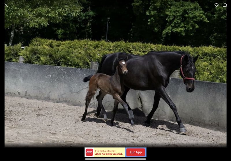 C-Quirl vom Leisch Holsteiner Stute * geb. 16. Mai 2023 Chubakko x Nekton x Barinello Springveranlagung – Dressurqualität – Vielseitigkeitsperspektive C-Quirl vom Leisch ist eine auffällig schöne, schwarzbraune Holsteiner Jungstute mit exzellentem Fundament, klarem Exterieur und sehr guten Grundgangarten. Sie bewegt sich schwungvoll mit aktiver Hinterhand und natürlichem Gleichgewicht – ideal für Sportpferde mit vielseitiger Perspektive. Sie wächst artgerecht in einer großen Fohlenherde auf, war im Sommer im 24/7-Weidegang und steht nun im Aufzuchtstall mit Gleichaltrigen. Sie kennt das Fohlen-ABC, ist halfterführig, verladefromm, regelmäßig entwurmt und dem Schmied vorgestellt – alles absolut problemlos. Besonders hervorzuheben ist ihr nervenstarker, klarer Charakter. C-Quirl zeigt sich unerschrocken, intelligent und sehr menschenbezogen – Eigenschaften, die sie als zukünftiges Vielseitigkeitspferd prädestinieren. Abstammung – Dressur & Springen clever vereint Vater: Chubakko (Connor x Colman x Contender) Ein sportlich moderner Hengst mit international begehrter Springabstammung und beeindruckender Leistungsbilanz: * Siege & Platzierungen in Springpferdeprüfungen bis Kl. M * Hervorragende Vererbungsleistung: z. B. Siegerfohlen beim Holsteiner Fohlenchampionat * Gepaart mit Top-Rittigkeit, korrektem Fundament und klarer Kopfveranlagung * Chubakko bringt zusätzlich viel Bewegungstalent mit – ideal für die moderne Vielseitigkeit Mutter: T-Naomi (Nekton x Barinello) T-Naomi überzeugt mit Typ, Charakter & Leistung: * Eingetragen mit 8er-Noten * Rappstute mit kraftvollem Sprung, Übersicht & sehr gutem Charakter * Nekton (v. Nimmerdor) war selbst bis Klasse S erfolgreich und vererbt Leistungsstärke und Rittigkeit gleichermaßen * Über Barinello (Baryshnikov x Cor de la Bryère) kommt bestes Holsteiner Blut mit Springkraft, Härte und Bewegungsstärke in die Linie Das macht C-Quirl so besonders: → Die seltene Verbindung aus Springvermögen, Bewegung und Charakter, die sowohl für Dressur, Springen als auch insbesondere für den Vielseitigkeitssport ideale Voraussetzungen schafft. * Vielversprechende Spring- & Vielseitigkeitsabstammung * Sehr gute Grundgangarten mit sportlicher Dynamik * Freundlich, unerschrocken & menschenbezogen * Aufzucht im Herdenverband – bestens sozialisiert * Korrekt, gesund, regelmäßig entwurmt & beim Schmied vorgestellt Besichtigung nach Absprache möglich Wichtig ist uns vor allem ein liebevolles und passendes Zuhause. Der Preis ist verhandelbar – bei ernsthaftem Interesse finden wir sicher eine faire Lösung! Faire Angebote sind Herzlich willkommen / VHB Kontaktieren Sie uns gerne – wir freuen uns, C-Quirl vom Leisch persönlich vorzustellen.