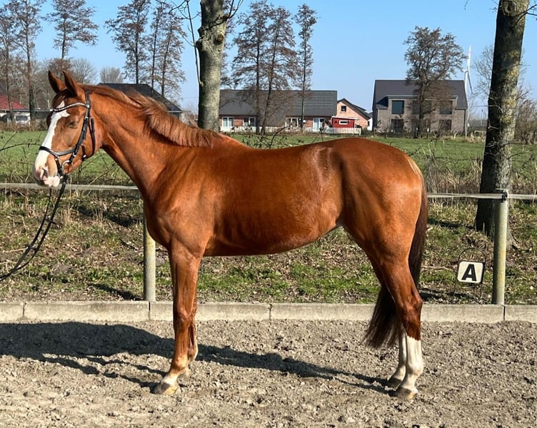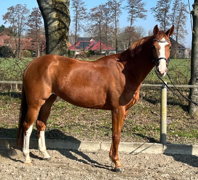 5-year-old chestnut mare. The mare was backed last summer. Afterwards, our daughter took over her care. Unfortunately, they haven't quite found their rhythm together. The mare needs an experienced rider who can support and further her training. She moves well in all three gaits in the indoor arena and on the outdoor sand arena, and is minimally distracted by external influences. She has some initial experience on small hacks and leaves the yard alone without any issues. In traffic, she behaves appropriately. Farrier/loading area: Regularly vaccinated and dewormed. Her teeth are checked regularly. Additional pictures/videos can be provided upon request.