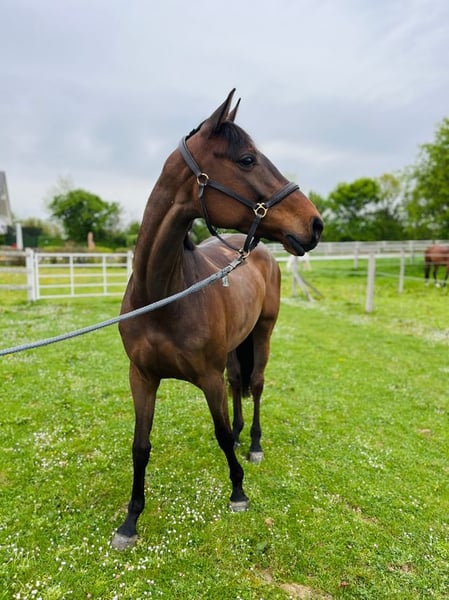 Unsere selbstgezogene 5 jährige Holsteiner Stute ist aktuell Springpferde A platziert. Im täglichen Training zeigt sie sich stets motiviert und gehfreudig. Dabei ist sie fein im Maul und angenehm zu reiten. Eine vielversprechende junge Stute für den weiteren Sporteinsatz. Die Großmutter ist bis 1,40m gelaufen und ihre Mutter hat bis 1,35m gewonnen.