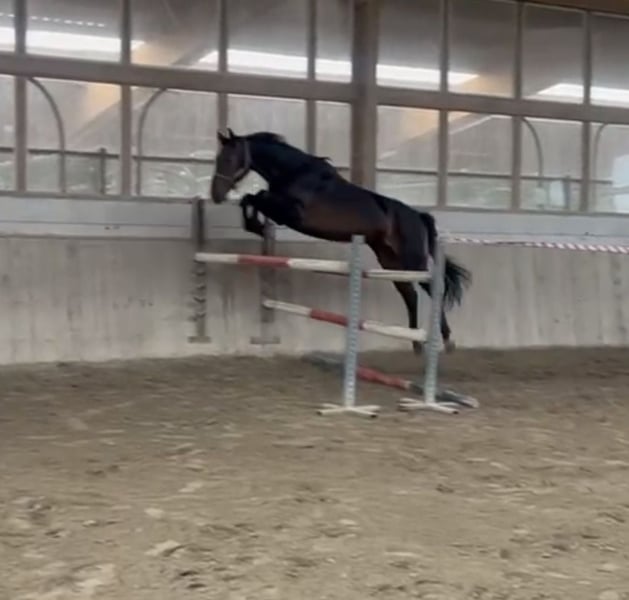 Formidable T ist eine 5-jährige Holsteiner Stute . Sie hat letztes Jahr ein prämiertes Hengstfohlen von Kannan zur Welt gebracht. Von der Besamung bis zur Geburt war alles sehr unkompliziert, daher wäre sie auch weiterhin für die Zucht interessant. Momentan wird sie bei uns schonend angeritten. Sie hat einen lieben Charakter, ist aber sensibel und daher aktuell kein Anfängerpferd. Sie ist aus unserem erfolgreichsten Mutterstamm, aus dem schon Pferde bis 1,60 erfolgreich im Springsport gehen. Ihre Mutter war selbst bei uns bis 1,45 erfolgreich. Formidable soll wegen Bestandsverkleinerung verkauft werden. Bei Interesse können Sie sich gerne bei uns melden.