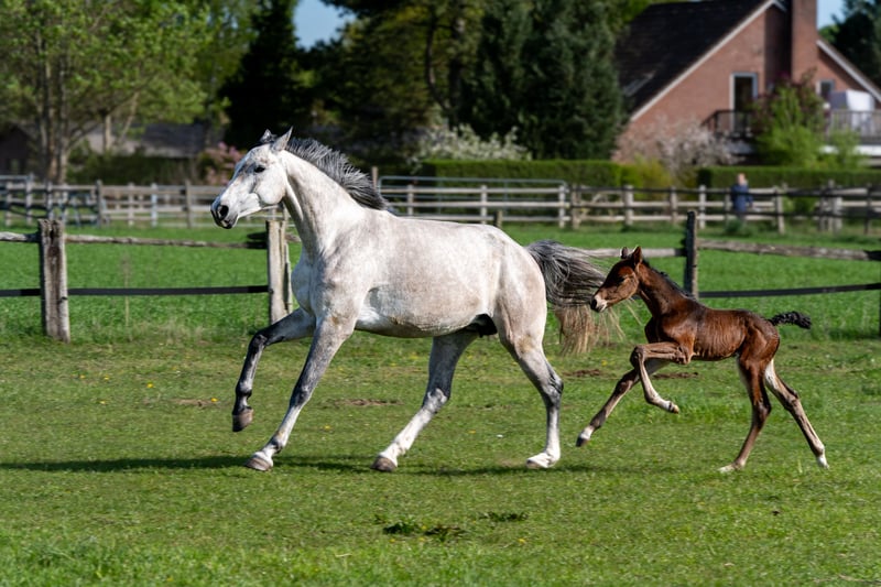 Direct from the breeder: 6-year-old Holsteiner mare, bloodline 2495 For sale is a 6-year-old Holsteiner mare with an approximate height of 16.1–16.2 hh. The mare has been lightly backed in the past, then had a foal, and has recently been in training again to further her education. Please do not expect too much at this stage! Training level: light, not fully backed. She is a very sensitive, refined mare and somewhat environmentally cautious – therefore not suitable for beginners. Currently, her riding education is still in the early stages, as her muscles and balance need to be developed further after the foal period. Those who give her the necessary time will have a horse with significant potential for development. Character-wise, she is absolutely lovable, almost “Labrador-like,” very affectionate and strongly attached to her handler. At the same time, she is alert and lively, making her especially interesting for ambitious riders, as she already demonstrated great scope and awareness during her first free jumping sessions. ✔️ Directly from the breeder, never passed around ✔️ Excellent breeding conditions ✔️ Registered as a broodmare with the Holsteiner Verband, takes foals easily, foal was very correct and well-behaved, quickly found a new home ✔️ Regularly dewormed, vaccinated, teeth checked, and presented to the farrier ✔️ Registered as a competition horse The mare was examined comprehensively at the age of 3 before starting under saddle, including gait analysis and flexion tests, with no abnormalities detected. Only chips were found in the hind fetlock joint, which were removed prophylactically and without complications. A new TÜV (health check) can be arranged upon request. Pedigree with proven lineage: Several late developers are found in her bloodline, all of whom showed excellent progress in show jumping with proper support. We are familiar with multiple generations as breeders. Existing surgical insurance can be transferred if desired. Location: 17373 The mare is being offered for sale due to sufficient offspring and no further riding ambitions. She can also be bred again upon request. Price will increase with further training and potential competition appearances. ➡️ An exciting, affordable investment for someone with time, patience, and a feel for a sensitive horse. Contact: +49 173 4683761