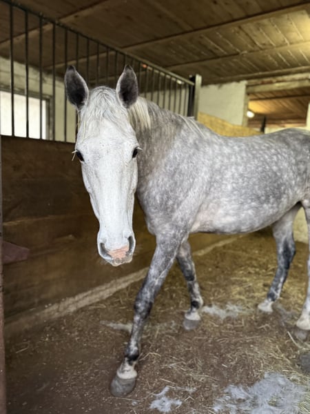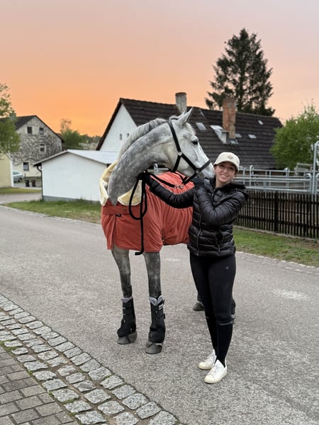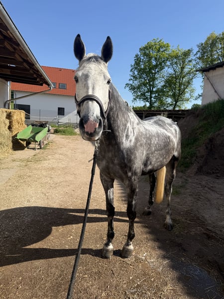 Mit einem lachenden und einem weinenden Auge suche ich für meine wunderschöne Holsteiner Stute ein Zuhause, in dem sie wirklich ankommen darf. Sie ist sechs Jahre alt, aber trägt bereits diese besondere Ausstrahlung in sich. Ihr Apfelschimmelkleid macht sie zu einen Blickfang, doch es ist ihr Charakter, der sie so besonders macht. Im Umgang ist sie ein wahrer Schatz: freundlich, aufmerksam und immer bemüht, ihrem Menschen zu gefallen. Sie geht selbstverständlich alleine ins Gelände, genießt jede Runde und zeigt sich dabei erstaunlich mutig für ihr Alter. Auch auf Turnieren bleibt sie gelassen und zuverlässig. Beim Schmied und Verladen ist sie absolut unkompliziert – sie macht es einem wirklich leicht, sie gernzuhaben. Gesundheitlich ist sie ein echtes Naturtalent: robust, widerstandsfähig und bislang vollkommen gesund. Ein Pferd, das einfach „funktioniert“ – in jeder Hinsicht. Unter dem Reiter orientiert sie sich gerne am Menschen und läuft besonders schön, wenn sie eine Person spürt, die ruhig und sicher führt. Dann blüht sie auf, zeigt ihr großes Potenzial und ihre Freude an der gemeinsamen Arbeit. Sie hat diesen besonderen Funken, den man nicht trainieren kann – den bringt sie einfach mit. Ich wünsche mir für sie einen Platz, an dem sie geliebt und geschätzt wird, wo aus Alltag Partnerschaft wird und aus Routine Vertrauen. Eine Familie oder ein Mensch, der sie ebenso besonders findet wie ich und ihr ermöglicht, all das zu zeigen, was in ihr steckt. Der Entschluss zur Abgabe fällt mir wirklich nicht leicht, doch ich bin überzeugt, dass sie bei den richtigen Menschen ein Pferd fürs Herz wird – eines, das man nie wieder hergibt.