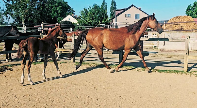 Te koop vanwege beëindiging van de fokkerij door ziekte van de fokker (Uitsluitend in liefdevolle, waarderende handen en in een eersteklas thuis) - 5-jarige Holsteiner merrie - Donker vosschimmel (alleen schimmelscheck, geen schimmel!) - Al als veulen gepremieerd - Beide ouders succesvol tot op hoog niveau in dressuur en springen Top pedigree Afstamming van vaderszijde: Topas - Totilas - Gribaldi - Sandro Hit - Sandro Song Afstamming van moederszijde: Carano × Capitol 1 - Corrado 1 - Cor de la Bryere - De merrie is nooit gewond of ziek geweest - Stabiele basis en sterke gewrichten - Wordt momenteel (vanwege haar grootte laat) ingereden - Had op 4-jarige leeftijd haar eerste, zeer goede veulen (laatste foto in de galerij) als basis voor haar latere, sportieve pensioen - Momenteel heeft ze haar tweede, zeer goed gelukt veulen aan de voet - Moet nu na het spenen relaxed aan haar sportieve carrière beginnen bij de start van het volgende seizoen - Goed gesocialiseerd (gemengde leeftijd, gescheiden geslachten, 24/7 buiten) - Kent de stal - Foktechnisch zeer interessant, inseminatie, dracht en geboorte probleemloos - Uitstekende gangen - Super helder hoofd (geeft ze ook door aan haar nakomelingen) - Top interieur, absoluut ontspannen tijdens het inrijden - Zeer keurig in omgang en handling - Verkoop ook mogelijk in pakket met dit jaar hengstveulen tegen speciale voorwaarden! Video's op aanvraag in persoonlijk contact! Huidige TÜV kan op elk moment door de koper worden uitgevoerd. Kosten hiervoor worden door de verkoper gedragen bij ernstige gebreken.