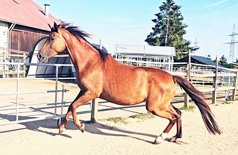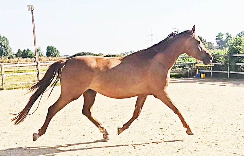 À vendre uniquement en raison de l'abandon de l'élevage en raison de la maladie de l'éleveur (Exclusivement dans des mains aimantes et appréciatives et dans un foyer de premier ordre) - Jument Holsteiner de 5 ans - Alezan foncé (seulement une robe de gris, pas de gris !) - Déjà primée en tant que poulain - Les deux parents ont réussi jusqu'à la classe supérieure en dressage et en saut d'obstacles Super pedigree Ascendance paternelle : Topas - Totilas - Gribaldi - Sandro Hit - Sandro Song Ascendance maternelle : Carano × Capitol 1 - Corrado 1 - Cor de la Bryère - La jument n'a jamais été blessée ou malade - Fondement stable et articulations solides - Est actuellement montée (en raison de sa taille, un peu tard) - A eu son premier poulain très bon à l'âge de 4 ans (dernière image dans la galerie) comme base pour sa retraite sportive ultérieure - Actuellement, elle a son deuxième poulain très réussi à ses côtés - Doit maintenant, après le sevrage, commencer sa carrière sportive de manière détendue au début de la prochaine saison - Bien socialisée (élevage en troupeau mixte, séparé par sexe, 24/7 à l'extérieur) - Connaît le box - Élevage très intéressant, insémination, gestations et naissances sans problème - Excellentes allures - Super tête claire (elle transmet cela à sa descendance) - Top intérieur, absolument détendue lors de la monte - Très agréable à manipuler et à gérer - Vente également possible en paquet avec le poulain de ce printemps à des conditions spéciales Vidéos sur demande lors d'un contact personnel ! Le contrôle vétérinaire actuel peut être effectué à tout moment par l'acheteur. Les coûts seront couverts par le vendeur en cas de défauts majeurs.