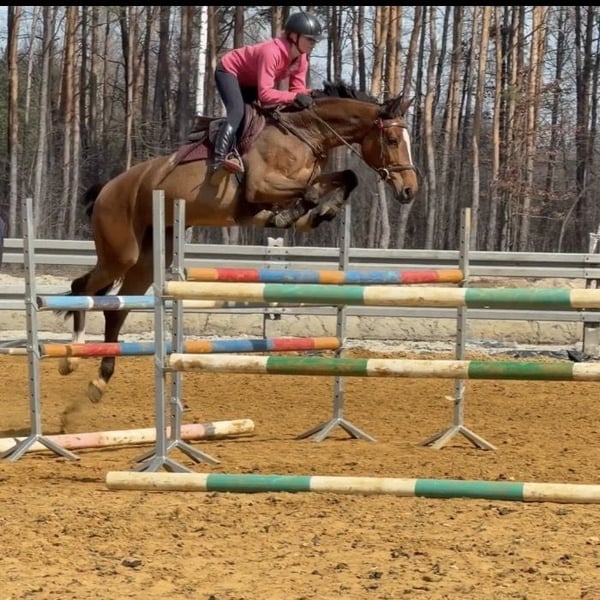 Come fly with me 2019 COME IL FAUT x CHIN CHAMP Beautiful Holsteiner mare experienced up to 115 cm with potencial For much more She has very quick legs and really like to jump ! 166 cm She was ridden by amateur so she is not perfect in dressage but will develop with good rider. Always on other side of the jump ! Very honest horse , very sensitive . Calm and safe from ground . Has xrays she is clean . Located Poland