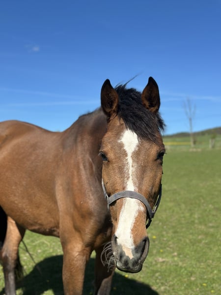 Ich verkaufe eine Holsteiner Zuchtstute (Stamm 776), geboren 2019. Sie hat bereits zwei Fohlen gehabt. Die Stute ist seit 1,5 Jahren bei mir und zeigt sich stets sehr lieb. Auch beim Hufschmied und Tierarzt ist sie brav. Sie ist sehr verständig und lernwillig und eignet sich gut für die weitere Ausbildung sowie zum Anreiten. Aktuell ist sie noch roh und wurde bisher kaum gearbeitet. Ein Fohlen kann bei mir besichtigt werden. Die Stute steht in Tschechien, ca. 30 Minuten von der deutschen Grenze entfernt. Ein Transport kann nach Absprache organisiert werden.
