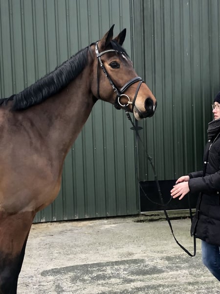 For sale: 9-year-old Holsteiner district premium mare Sired by Cash and Carry out of Contender, with Quinar and Lord in her pedigree Dam line 18A2, height approximately 16.1 hh She has already produced a very correct ET foal by Diaron Location: near Kiel Price negotiable. Feel free to contact me via private message for more details.