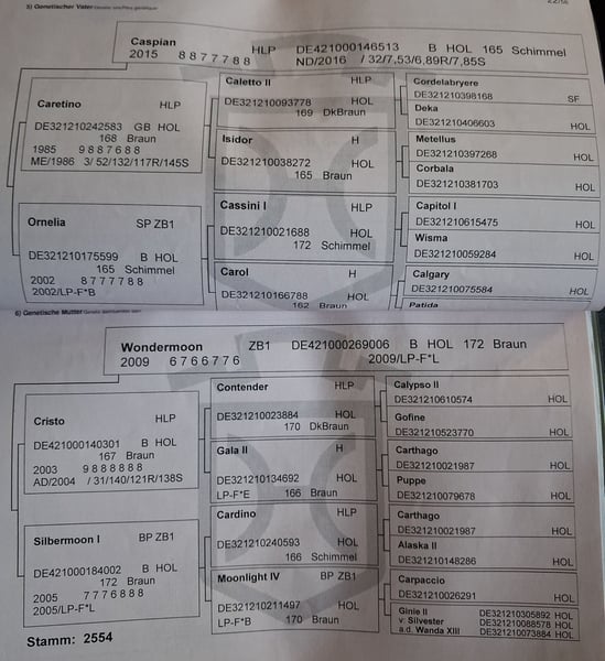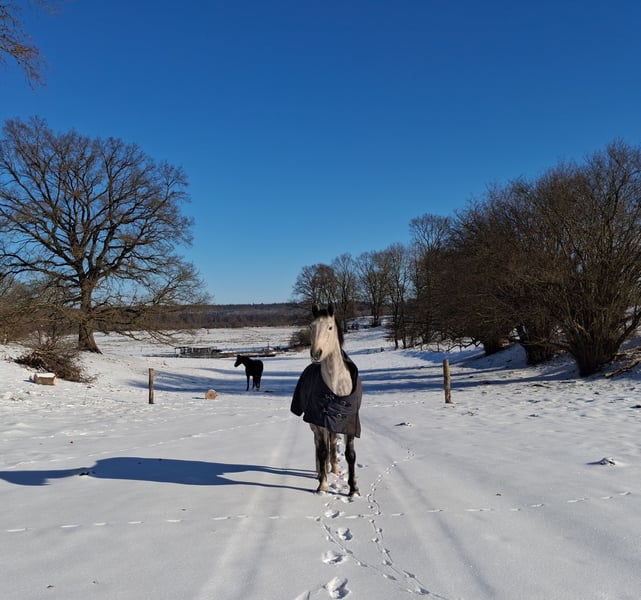 Hallo. Ich verkaufe diese 9 jährige, 168 cm große, Holsteiner Stute als solides Freizeitpferd. Unerschrocken und artig kann man mit ihr Spaß haben und auch Kinder drauf reiten lassen. Sie lebt in Robusthaltung, d. h. 24/7 draußen, 365 Tage im Jahr und ist relativ unverbraucht, da sie erst später intensiver gefördert wurde, was auf fehlende Zeit zurückzuführen war. Sie lief ein paar kleine Springen auf Turnier und wird derzeit für die aktuelle Saison vorbereitet. • verladefromm • überwiegend barhuf • derzeit wg Turniersaison beschlagen • im Turnierrhythmus geimpft • quartalsweise entwurmt Vielleicht auch für die Zucht interessant (Stamm 2554), hatte bis dato aber noch kein Fohlen. Handicap: Ich suche einen fürsorglichen Menschen mit Herz, der sie regelmäßig (halbjährlich) dem Tierarzt vorstellt, um die Zähne raspeln zu lassen (gerne mehr im persönlichen Gespräch).