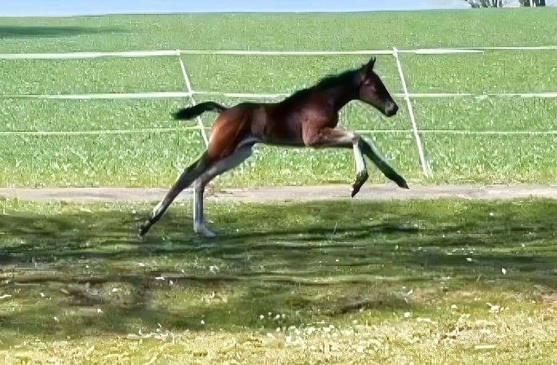 Un puledra di razza, nata il 30.03.2025, da una fattrice premiata di razza Holsteiner, che ha partecipato a competizioni di salto ostacoli di categoria A e L. Il padre è il giovane stallone Comme Cavelle (da Comme Prevu). Ha vinto il PSA Tour a Donaueschingen nel 2024 con un punteggio di 9,0 sotto la guida di Richard Vogel.
