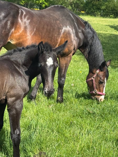 Avec Duncan Hero, nous vous présentons un poulain étalon correct, sociable et typique, dans une présentation moderne. Il se distingue par son extérieur bien proportionné et élégant, avec une tête et un cou typiques des étalons. Duncan se montre de caractère correct, amical et confiant. Un poulain avec un grand avenir sportif. Sa pleine sœur de 2 ans est en notre possession et peut également être vue sur demande. Sa mère Quira est une jument primée de district Holsteiner, issue de Quintero / Ramirado / Acord II, et provient de la lignée Holsteiner à succès 474 a. Sa sœur Farmers Girl a déjà remporté des compétitions internationales à 1,50 m avec Frank Schuttert (NL) à l'âge de 9 ans. De nombreux étalons approuvés descendent de cette lignée, tels que Bubalu VDL, Calato, Calderon, Fernando, Great Pleasure, Nimrod B, Q-Verdi, Quicktime ou Vingino. Dans le sport, des noms légendaires s'alignent également, comme Brilliante (vice-championne d'Europe avec Inken Johannsen), Bubalu VDL (médaillé d'argent par équipe aux Jeux Olympiques de Londres 2012) ou l'étalon de reproduction Q-Verdi (médaillé d'argent par équipe aux Jeux Olympiques de Londres 2012 / champion du monde et d'Europe). De plus, de nombreux chevaux de saut d'obstacles ont connu le succès dans la catégorie la plus difficile. De nombreuses juments primées lors des présentations d'élite Holsteiner. Une lignée de performance solide dans les domaines du sport et de l'élevage ! Le premier poulain étalon de Quira, né en 2014 de Mylord Carthago, a déjà été vendu avec succès lors de la Quality Auction à Zangersheide et a été bien placé à l'international à l'âge de 6 ans. Son descendant de Taloubet Z a également acquis ses premières expériences en parcours et a déjà pu se classer. En raison de sa lignée et de sa descendance exceptionnelle, Quira n'a pas été utilisée sportivement. Son père Diacontinus (Diarado / Contendro) n'a pas besoin de présentation. De nombreux descendants se distinguent régulièrement dans le grand sport, au Bundeschampionat et au Championnat du Monde des jeunes chevaux. Actuellement, 28 étalons approuvés font partie de sa descendance. Depuis des années, il est en tête du classement de la FN pour les examens de jeunes chevaux. Le grand-père Quintero Ask a été l'un des chevaux de saut les plus réussis d'Allemagne sous la conduite de Lars Bak Andersen et Rolf-Göran Bengtsson. Troisième aux Championnats du Monde des jeunes chevaux de saut à Lanaaken. Il a également remporté de nombreuses victoires et classements dans des épreuves par équipes et des Grands Prix. De plus, il a remporté trois fois le Gucci Challenge à Paris et a terminé sixième en finale de la Coupe du Monde à Göteborg. Quintero Ask laisse derrière lui 15 fils approuvés, dont le millionnaire Breitling LS (Elizabeth Madden), issu d'une mère Acord II, ainsi que de nombreux chevaux de sport victorieuses à 1,60 m.
