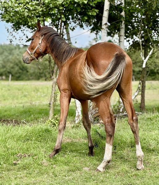 In vendita un puledro stallone di 2 anni, che in futuro potrebbe diventare il fiore all’occhiello del suo fenomenale padre e nonno. Si tratta di un cavallo ideale per chi cerca non solo una genetica di livello mondiale, ma anche un manto accattivante e un carattere di collaborazione e sintonia in gara. Il suo padre, Esmeraldo (Emerald van't Ruytershof x Caretino), è stato acclamato come stella dell’Unione Holstein, suscitando l’ammirazione degli esperti tedeschi durante la valutazione e la presentazione degli stalloni. Esmeraldo è un cavallo completo, dotato di un potenziale saltato illimitato, di una conformazione moderna e di una presenza magnetica. La madre di questo giovane puledro proviene invece da una delle più pregiate linee di sangue holstein al mondo – 104a. È una discendenza che da generazioni garantisce i più alti standard di qualità sportiva. Questo giovane stallone assomiglia sorprendentemente al padre. Nonostante i colori più sobri, la macchia sul ventre conferma la presenza del gene W20, proprio come nel padre, che ha anche una coda argentata (Esmeraldo nell’ultima foto). Abbiamo avuto l’opportunità di conoscere Esmeraldo di persona in Germania, prima dell’accoppiamento con la fattrice, e con orgoglio possiamo affermare che il nostro puledro ha ereditato dal padre anche un carattere fenomenale. È estremamente curioso, divertente e socievole. Ama il contatto con l’uomo e le attività condivise. Ha una grande voglia di lavorare, ed è allo stesso tempo coraggioso, sicuro di sé e pieno di fiducia nel mondo. Viene allevato al pascolo libero in un branco di coetanei, il che gli garantisce salute e un’ottima coordinazione motoria. Il cavallo è rustico, socializzato, pronto per il lavoro a terra, e in futuro potrà diventare una stella nelle mani di un cavaliere ambizioso o di un allevatore. È un’opportunità per acquistare un cavallo che onora con fierezza la linea di sangue del suo padre e nonno – alcuni dei stalloni più desiderati della nostra generazione.