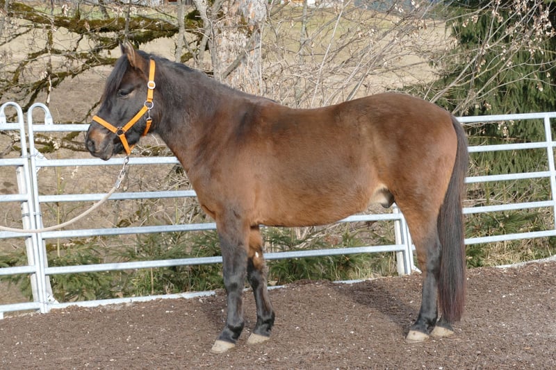 Huzule Wallach 5j. Dunkelbraunfalbe Stm. 143cm. rahmiger, kompakter, hübscher Typ mit guten GGA und viel Ausstrahlung; geritten und gefahren; sicher im Gelände, er besticht durch seine Selbständigkeit und seinen Mut bei der Arbeit; gehorsam im Umgang, - Ein zukunftspferd, der auf der Suche nach seinen Bezugspersonen ist!, schmiede u verladefromm, für Offenstall geeignet, in der Herde verträglich