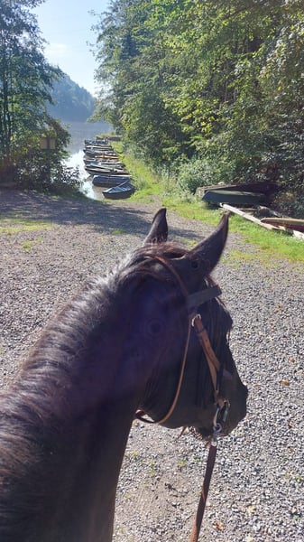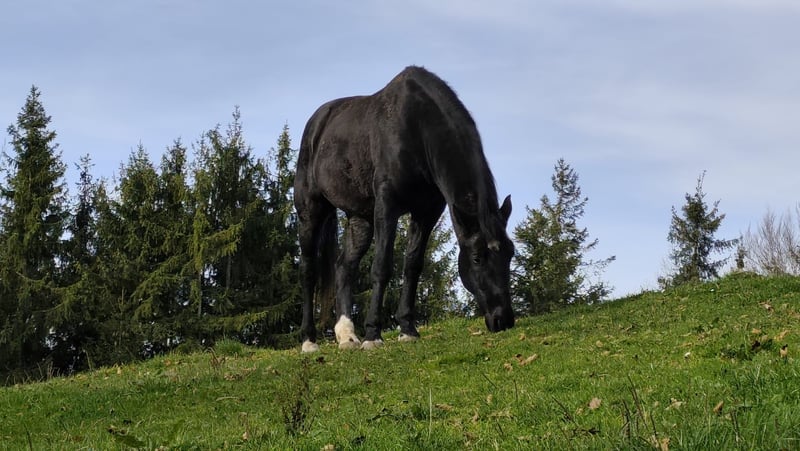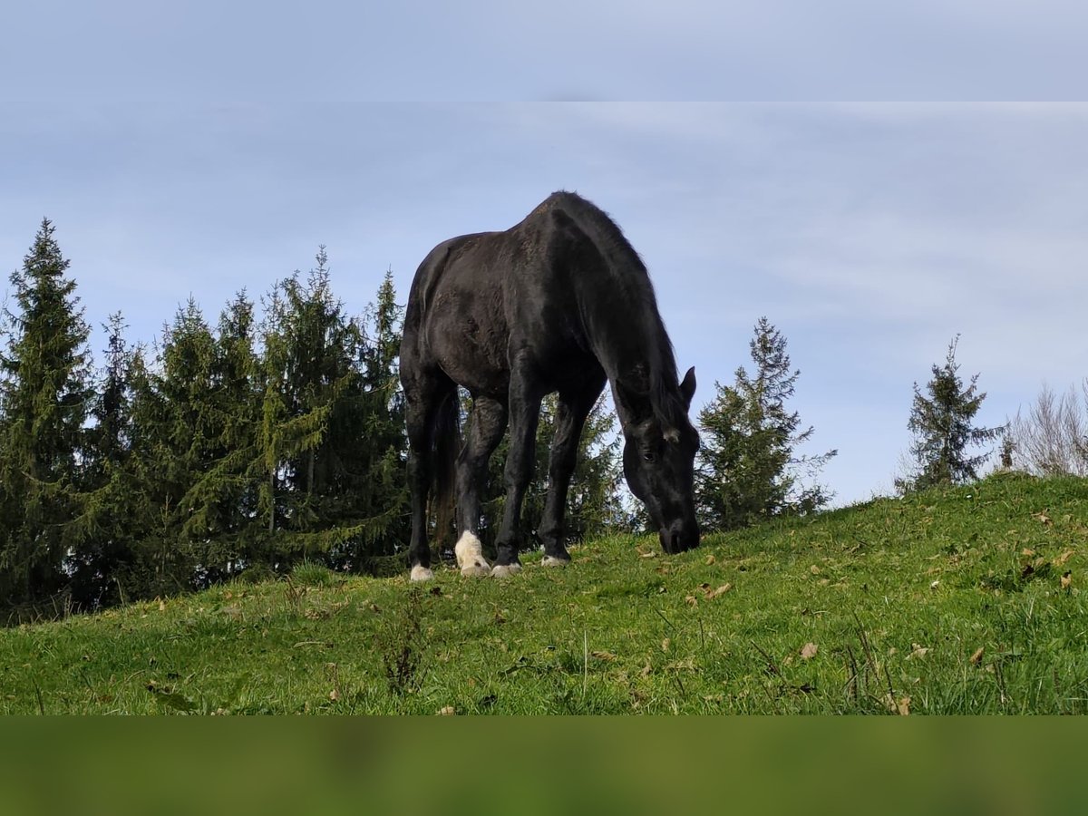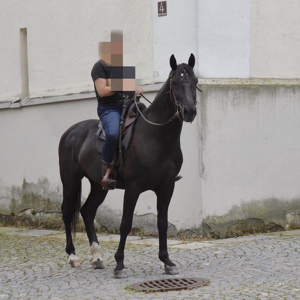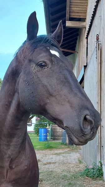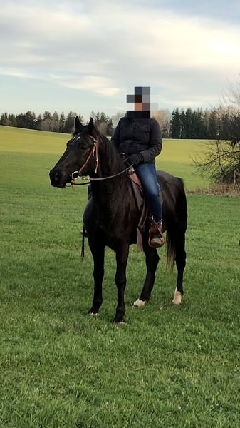 Verkauf im Auftrag Cudar ungarisches Warmblut Schwarz 160 cm Stockmaß geb. 1.März 2016 regelmäßig beim Hufschmied/entwurmt/geimpft/Zähne gemacht hauptsächlich im Gelände in allen Gangarten geritten, zur Zeit barhuf eher ranghoch, kein Anfängerpferd steht aktuell in einer Paddockbox, 24/7 Heu, ab der Weidesaison Tag/Nacht Zugang auf die Koppel. Cudar geht gerne ins Gelände, ist dort unerschrocken und neugierig, läuft fleißig im Schritt, Trab und im Galopp, braucht aber eine sichere Hand, die ihn leitet. Er hatte die letzten drei Jahre keine Hufeisen und lief problemlos auf allen Untergründen, hier vor allem Teer, Wiesenwege und Feldwege. Gerne geht er lange Ausritte, auch mal mit dem Hänger in anderer Umgebung. Wanderritte wären sicher super für ihn. Er ist sehr verschmust und menschenbezogen. Durch familiäre/gesundheitliche Gründe hat der Besitzer leider keine Zeit mehr für ihn, deshalb hatte Cudar das letzte Jahr eine Reitbeteiligung, die ihn allerdings fast ausschließlich auf unserem kleinen Sandplatz geritten bzw. Bodenarbeit wie Equikinetik, Dualaktivierung oder Longenarbeit gemacht hat, da sie nicht alleine ins Gelände gehen wollte. Cudar ist unterfordert und so soll er seinen Menschen finden, der ihm die Zeit geben kann, die er braucht. Beim Vorbesitzer stand er in einer größeren Herde, dort war er eher ranghoch. Dort hatte er auch Hufeisen und lief regelmäßig bei Ausritten für Reitgäste mit. Zufallsbefund aus der letzten AKU – Röntgenbilder zeigen verwachsenen Jungpferdespat hinten keinerlei Lahmheit in den letzten drei Jahren.
