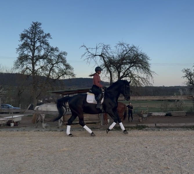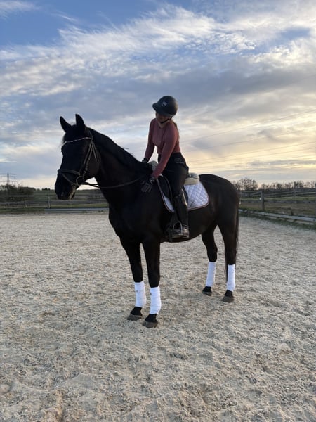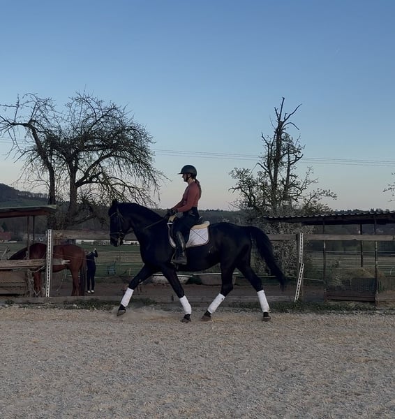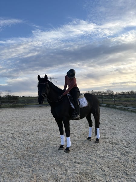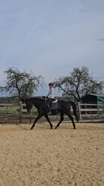 Zum Verkauf steht unser 2015 geborener Nonius Wallach „Käfer“ (liebevoll auch „Björn-Maggus“ genannt) mit einem Stockmaß von ca. 1,65 m. Käfer ist ein kräftig gebautes, stabiles Pferd, das seinem Reiter ein sehr angenehmes und sicheres Gefühl vermittelt. Durch seinen Körperbau deckt er auch größere oder schwerere Reiter gut ab und eignet sich damit ideal als verlässlicher Freizeitpartner. Unter dem Sattel überzeugt er mit bequemen, gut zu sitzenden Gangarten und einer soliden Ausbildung auf E-Niveau. Er arbeitet motiviert mit und macht sowohl in der täglichen Dressurarbeit als auch in der Bodenarbeit viel Freude. Er kennt Longe, Doppellonge und Freiarbeit und zeigt sich hier aufmerksam und lernwillig. Im Springen ist er brav und ehrlich, neigt jedoch dazu, zum Sprung hin etwas stärker zu werden. Aufgrund seines stabilen Körperbaus sehen wir ihn nicht im regelmäßigen Springeinsatz, sondern eher als vielseitiges Freizeitpferd mit gelegentlichen kleinen Sprüngen. Im Gelände war er bisher brav unterwegs, benötigt jedoch noch einen Reiter, der ihm Sicherheit gibt, da ihm hier einfach noch Routine fehlt. Charakterlich ist Käfer ein sehr verschmuster, menschenbezogener und kinderlieber Wallach, der die Zeit mit „seinem“ Menschen genießt. Im Umgang zeigt er sich sensibel und braucht eine ruhige, klare Führung, an der er sich orientieren kann. Mit der passenden Bezugsperson ist er zuverlässig und wird auch von Jugendlichen geritten. In der Herde ist er verspielt und eher ranghoch. Daher wünschen wir uns für ihn eine Haltung im Offenstall oder eine Box mit ganztägigem Paddock und ausreichend Sozialkontakt. Wir suchen für Käfer einen Menschen, der Freude daran hat, sich mit ihm zu beschäftigen, ihm Sicherheit gibt und eine vertrauensvolle Partnerschaft aufbauen möchte. Er ist kein „reines Anfängerpferd“, aber ein toller Partner für ambitionierte Freizeitreiter, die ein ehrliches, angenehmes Pferd zu schätzen wissen. Standort 91077 Preis 7.000 € Verhandlungsbasis