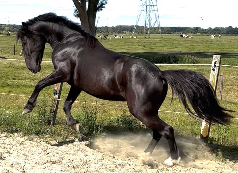 Wer wird hier nicht sofort verliebt sein? ⭐️ Lernen Sie Jack kennen, eine wunderschöne schwarze Perle mit einem beeindruckenden Äußeren und einem ehrlichen, liebevollen sowie anhänglichen Charakter! 🐴 Über Jack: • Alter: 3/4 Jahre • Stockmaß: 1,43 m (wächst noch leicht, vor allem in der Breite) • Kürzlich geimpft • Bekannt mit Longieren im Sattel – reagiert hervorragend auf Stimmkommandos! • Hat einen Pass (ungarisches Sportpony, keine bekannte Abstammung) Charakter: Jack ist ein liebenswerter, ehrlicher, fröhlicher und lernwilliger kleiner Kerl mit einem offenen und sozialen Wesen. Er strahlt positive Energie aus und ist auch gegenüber anderen Pferden äußerst sozial und freundlich. Zukünftiges Talent: Dieses Schätzchen ist bereit, weiter gefördert zu werden und ganz nach Ihren Vorstellungen geformt zu werden. Er kam ursprünglich aus der Zucht zu mir und ist nun bereit für den nächsten Schritt. Jack hat das Potenzial, ein echter Allrounder zu werden – er könnte großartig sein in: 🏇 Vielseitigkeit • Springen • Dressur • Ponyreiten • und noch viel mehr! Mit der richtigen Betreuung wird er auch ein fantastisches Pony für Kinder. Jack sucht nur ein tolles Zuhause, in dem er die Liebe und Aufmerksamkeit erhält, die er verdient. Sind Sie derjenige, der Jack eine goldene Zukunft bieten kann? Zögern Sie nicht, eine Nachricht oder WhatsApp an +31 6 45866198 zu schicken, um ihn kennenzulernen oder ein „Date“ mit diesem Schatz zu vereinbaren. 💕 📍 Standort: Zwartewaal 📍 Provinz: Südholland