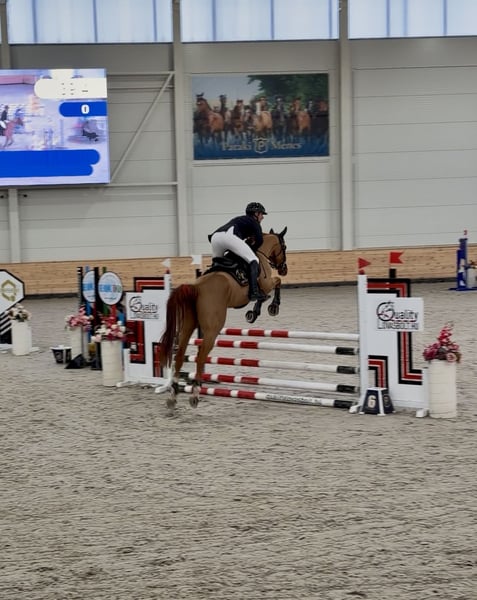 4-year-old Hungarian Sport Horse gelding for sale. He has an excellent pedigree, great jumping skills, and an outstanding work ethic. He is a very refined horse with a light jumping technique and great basic gaits. At his first ever competition, he competed in the 80-85 cm and 90 cm classes. He completed three clear rounds over the weekend with an amateur rider. His behavior at the show was impeccable; he didn't have a single bad move either from the ground or under saddle. With proper coaching, I highly recommend him for talented junior riders as well. In addition to being easy to ride, he is naturally athletic with excellent scope. We have tested him up to 140 cm in free jumping, which he clears with ease, almost from a trot. He shows great technique, tucking both his front and hind legs well and lifting his withers. He has the potential to be a winner in young horse style classes and later on bigger tracks. Ground manners: He is well-behaved, easy to tie, lead, and groom. He picks up his feet and is easy to saddle. He came to us directly from his breeder with clean X-rays, and he has remained in excellent health. All vaccinations and blood tests are up to date. Location: Budapest, Hungary (trial available by appointment) Price: €16,000 (subject to change as his training progresses)
