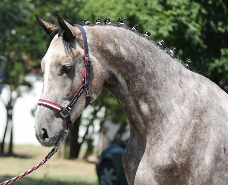Jeune cheval de sport prometteur à vendre – hongre de 4 ans, taille au garrot 1,70 m Son pedigree parle de lui-même, portant la lignée de chevaux de saut de classe mondiale. Ce cheval présente une silhouette moderne et élégante, une conformation très harmonieuse et une structure correcte des membres. Son allure est souple, légère et équilibrée, combinée à une excellente aptitude au saut. Malgré son jeune âge, il montre déjà un talent évident en saut d'obstacles et offre un grand potentiel pour l'avenir. Calme, sociable, facile à monter et coopératif – c’est le choix idéal pour les cavaliers ambitieux à la recherche d’un cheval de sport fiable et exceptionnel.