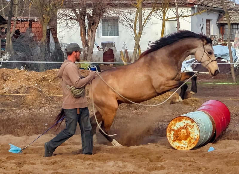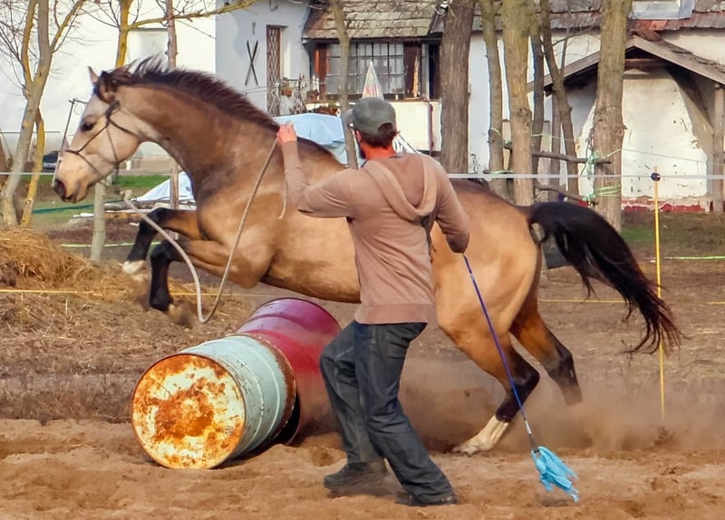 4yr old bucksin gelding for sale. Talented, open warmblood, ready to to be ridden in most any discipline. Trained according to classical principles, with natural horsemanship approach. Introduced to the bit recently without any problems. Basic lateral work, shoulders-in/out, haunches-in/out. Can do schoolhalt and the beginnings of passage. With the right guidance he can be a dreamhorse to the right horseman. Used to regural hoofcare, been trimmed a lot in liberty. 158cm at the withers. Feel free to contact me on WhatsApp for up to date info on Darius!