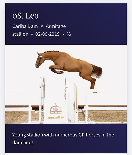 Till salu är en exceptionellt begåvad hopphäst, född 2019. Denna imponerande kastanj imponerar inte bara med sitt eleganta utseende utan också med sina enastående hoppkunskaper. Med en höjd på 169 cm är han den perfekta storleken för ambitiösa ryttare som letar efter en lovande partner för hoppning. Denna valack har stor potential och är redo att nå höga höjder med rätt ryttare. Om du letar efter en lovande sporthäst som övertygar både på banan och i hanteringen, kan den här charmiga kastanjen vara precis rätt häst för dig. För mer information eller för att ordna en visning, tveka inte att kontakta oss.