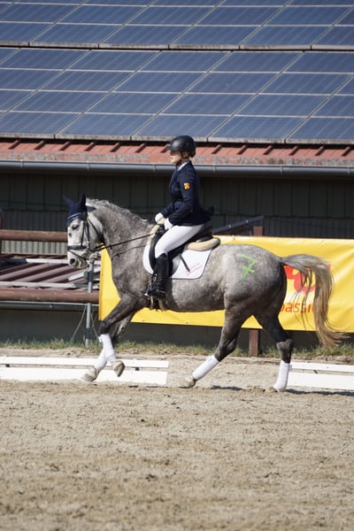 Fiorentina, ist eine sportliche und arbeitswillige Stute, die sowohl im Freizeitbereich als auch im Sport viel Freude macht. Sie bringt ordentlich Energie mit und hat immer Lust, etwas zu tun oder neu zu erlernen. Dabei zeigt sie eine sehr gute Einstellung zur Arbeit und möchte ihrem Reiter gefallen – besonders am Sprung ist sie motiviert und zieht zuverlässig hin. Sie ist fein zu reiten, reagiert gut auf Hilfen und ist durchlässig. Im Gelände ist sie gerne flott unterwegs und hat Spaß daran, auch mal Gas zu geben, bleibt dabei aber grundsätzlich händelbar. Sie hat bereits an einer Fuchsjagd teilgenommen, was sowohl Reiter als auch Pferd viel Spaß bereitet hat. Ansonsten wurde sie vereinzelt auf dem Turnier in E und A-Springen vorgstellt, sowie in einer A-Dressur. Fiorentina ist eine loyale Begleiterin, die mit ihrem Menschen durch dick und dünn geht – vorausgesetzt, man schenkt ihr Zeit und erarbeitet sich ihr Vertrauen. Hat man dieses einmal gewonnen, bekommt man ein Pferd, das für jeden Spaß zu haben ist und eine tiefe Bindung eingeht. Aufgrund ihrer Sensibilität und ihres Temperaments ist sie jedoch kein Pferd für Anfänger, Kinder oder unsichere Reiter. Sie ist sehr feinfühlig und nimmt die Stimmung ihres Reiters direkt wahr. Deshalb braucht sie jemanden, der ihr Sicherheit, Ruhe und eine klare Linie gibt. Bei konsequenter, fairer Arbeit lässt sie sich gut regulieren und zeigt sich dann entspannt, kooperativ und von ihrer besten Seite. Für einen erfahrenen Reiter, der ein motiviertes, sensibles und leistungsbereites Pferd sucht, ist Fiorentina ein absoluter Glücksgriff. Sie ist herdenverträglich und war in verschiedenen Konstellationen sowohl ranghoch, als auch rangniedrig. Sie wird im Offenstall gehalten und fühlt sich dort sehr wohl, weswegen wir uns auch das für sie wünschen. Wir wünschen uns außerdem ein liebevolles Zuhause im Besten Fall für den Rest ihres Lebens. Im Schutzvertrag würden wir gern ein Vorkaufsrecht festhalten, falls sie weiterverkauft werden sollte. Platz vor Preis.