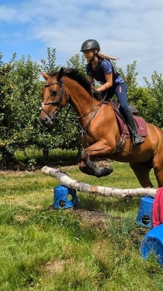 Leider müssen wir aufgrund von zeitlichem Mangel unsere Finis verkaufen. Sie ist eine tolle junge Stute, welche immer gefallen will und gefördert werden möchte. Sie wurde 2023 für unseren Sohn gekauft, er ist mir ihr Geländepferde A und Springen gegangen und hat sie im Vielseitigkeitssport gefördert. Sie ist ein absolutes Verlasspferd im Gelände und springt auch über unbekannte Hindernisse. Aufgrund des Ausbildungsbeginn und der damit verbundene Zeitmangel, wurde Finis im letzten Jahr von unserer 13 jährigen Reitbeteiligung geritten und weiter gefördert. Da aber abzusehen ist, dass mein Sohn weiterhin zeitlich sehr eingebunden ist suchen wir für Finis eine(n) neue(n) Besitzer(in) welche Spaß an der Vielseitigkeit oder im Springen hat und wo sie weiter gefordert und gefördert wird. Sie braucht einen erfahrenen Reiter(in), da sie noch jung ist. Finis trägt Eisen und ist absolut Schmiede- und Verladefromm. Sie wird mit kompletten Zubehör verkauft ( Spring-und Dressursattel, Gamaschen, Decken...). Bitte nur bei ernsthaften Interesse bitte per Whatsapp melden, da ich nicht immer telefonisch erreichbar bin. Wir verkaufen unsere Finis nur in sehr gute Hände, da sie ein wirklich tolles Pferd ist.
