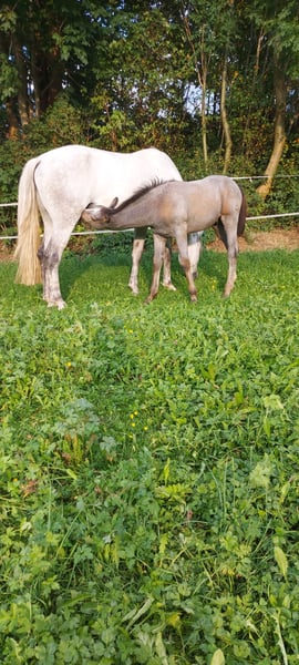 Vendo una hermosa yegua. Altura: 177 cm, nacida en 2017, yegua de cría registrada. Ha tenido tres potros maravillosos con nosotros (ver fotos). Sin malos hábitos. Se deja montar sola en el remolque sin problema. Vacunada y desparasitada. Registrada como caballo de competición. Es extremadamente fácil de montar. Una compañera de confianza absoluta, ya sea sola o en grupo. ¡Solo en las mejores manos! Excelentes radiografías de la espalda y las patas (de primavera de 2025). Nadie es perfecto. Levemente temblorosa en la parte trasera derecha — pero no afecta al caballo. (Solo al limpiar las cascos, a veces puede tener un pequeño espasmo). El caballo está herrado y actualmente en entrenamiento. También se le ha llevado mucho al campo. Precio: 15.000 € fijo, no negociable. Solo consultas serias.