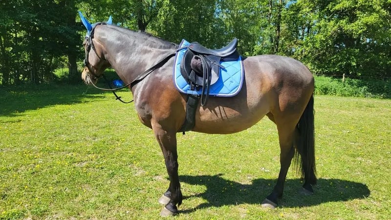 Na lang wikken en wegen heb ik toch besloten om een nieuw huis te zoeken voor mijn merrie. Adora (officiële naam Sharon) ✅️ Heeft haar entingen ✅️ 2024 gekeurd, overkeuren mag k.k. ✅️ Tandarts in Jan, recht gebit ✅️ Hoefsmid begin Feb Prijs inc een nieuw zadel Ik gun haar iemand die met plezier en toewijding met haar aan de slag gaat en haar de aandacht en begeleiding kan geven die ze nodig heeft. Haar galop zit heel lekker en we hebben ook een sprongetje gedaan. In de juiste handen kan ze mooi lopen. Vanwegen het missen van een klik zoeken we nu een ander huis. Adora is geen knuffelkont, behalve bij jeuk, dan komt ze naast je staan, ook als je wegloopt, omdat ze graag gekriebeld wil worden. Ze heeft een zekere, ervaren ruiter nodig die haar verder kan helpen en helaas ben ik dat niet. Dressuurmatig en voor cross biedt Adora potentie, en recreatief is ze fijn te rijden. Erg leergierig. Ze staat bij ons in een paddock 24/7 buiten maar heeft ervaring met een stal. Denk niet dat je haar daar gelukkig mee maakt, ze houdt van lekker rennen op de wei en neemt dan ook graag de oude pony's mee spelen. Soms is houden van ook loslaten. Ik merk dat ik te onzeker ben. Adora is introvert maar heeft een eigen wil. Ze heeft iemand nodig met meer ervaring in het trainen van paarden. Gaat enkel naar een liefdevol huis. Bij interesse gelieve berichten/whatsappen op 0642191553