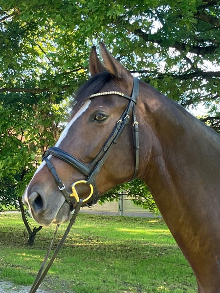 Due to a reduction in our stock, we are selling our 9-year-old mare. She has won the A** show jumping competition and is placed in L-level dressage. She is well-behaved in the field, but she can be a bit spooky, which is why we can imagine her with an ambitious rider who is not primarily focused on competition riding. She is NOT a rearer, bucker, or runaway!!! She has been with us since she was 1.5 years old. To avoid riding tourism, we charge €50 for trial rides, which will of course be deducted from the purchase price if a sale is made.