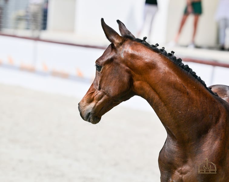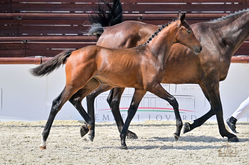 Wonder Touch VK - Hungarian sport horse filly, the champion mare of this year's hsh foal championship. The filly boasts an exceptional genetic background and outstanding potential. A beautiful looking, inquisitive, brave foal. With her excellent conformation and ideal temperament, she is perfectly suited for show jumping, while also offering great value for breeding. Wonder Touch's father is Native Touch, a young dark bay stallion of excellent lineage. His father is United Touch S, who himself has achieved great results at the highest international level, he took part in the Paris Olympics and he became second place with Richard Vogel in team play. Also he achieved gold in this year’s EU Championship. Among his ancestors are Classic Touch, Hors la Loi II and Capitol I. Native Touch’s mother is Darinosa. Darinosa’s father is Tjungske, his maternal sire is Nimmerdor. Wonder Touch's mother is Wega del Tiglio, a mare with a Wadi Kid M sire, his maternal sire is Lustling M. Wega del Tiglio is a beautiful looking, large-sized, very good-natured mare. Pedigree and Achievements: • Dam – Wega del Tiglio (Wadi Kid M x Lustling M): 2021 – Premium award at the mare evaluation. • Sire – Native Touch (United Touch S x Tjungske): o Fine, exceptional movement and good temperament. o His foals has elegant looking, lovely movement and great attitude. • Grandmother – Lady Jane del Tiglio (Lustling M x Espri): o Offspring highlights: Whiskey del Tiglio completed successfully at CSICh-A FEI jumping competition 125 cm Walchiria del Tiglio CCI3* - L Born on 29.04.2025.