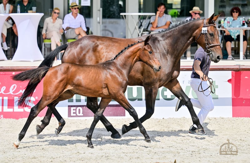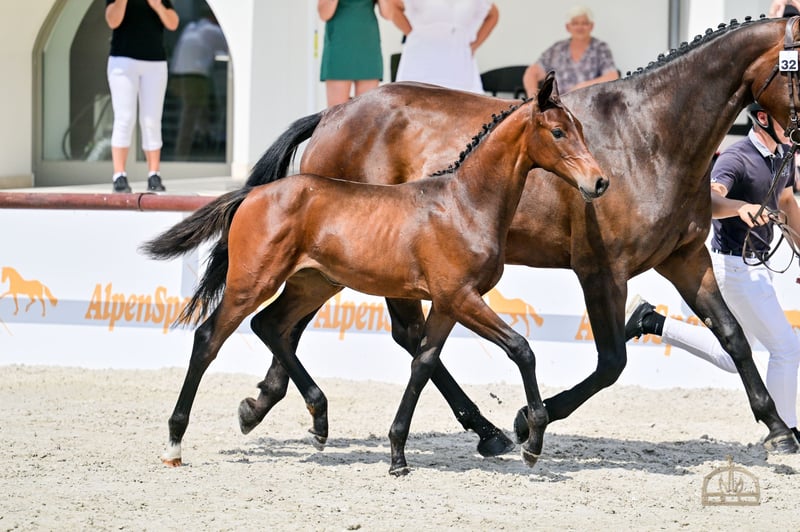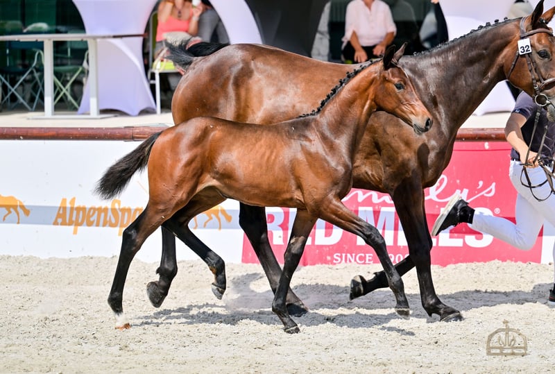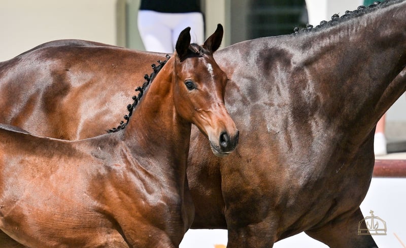 Wonder Touch VK - Ungarisches Sportpferde-Fohlen, die Championstute der diesjährigen HSH-Fohlenmeisterschaft. Das Fohlen verfügt über einen außergewöhnlichen genetischen Hintergrund und herausragendes Potenzial. Ein wunderschönes, neugieriges, mutiges Fohlen. Mit ihrer exzellenten Konformation und ihrem idealen Temperament ist sie perfekt für den Springsport geeignet und bietet zudem einen hohen Zuchtwert. Der Vater von Wonder Touch ist Native Touch, ein junger dunkelbrauner Hengst mit hervorragender Abstammung. Sein Vater ist United Touch S, der selbst großartige Ergebnisse auf höchster internationaler Ebene erzielt hat, er nahm an den Olympischen Spielen in Paris teil und belegte mit Richard Vogel im Teamwettbewerb den zweiten Platz. Außerdem gewann er Gold bei der diesjährigen EU-Meisterschaft. Zu seinen Vorfahren gehören Classic Touch, Hors la Loi II und Capitol I. Die Mutter von Native Touch ist Darinosa. Der Vater von Darinosa ist Tjungske, ihr mütterlicher Hengst ist Nimmerdor. Die Mutter von Wonder Touch ist Wega del Tiglio, eine Stute mit einem Wadi Kid M-Vater, ihr mütterlicher Hengst ist Lustling M. Wega del Tiglio ist eine wunderschöne, großrahmige, sehr gutmütige Stute. Abstammung und Erfolge: • Mutter – Wega del Tiglio (Wadi Kid M x Lustling M): 2021 – Prämienausschreibung bei der Stutenschau. • Vater – Native Touch (United Touch S x Tjungske): o Feine, außergewöhnliche Bewegung und gutes Temperament. o Seine Fohlen haben eine elegante Erscheinung, schöne Bewegungen und eine großartige Einstellung. • Großmutter – Lady Jane del Tiglio (Lustling M x Espri): o Nachzucht-Highlights: Whiskey del Tiglio hat erfolgreich an CSICh-A FEI Springwettbewerben über 125 cm teilgenommen. Walchiria del Tiglio CCI3* - L Geboren am 29.04.2025.