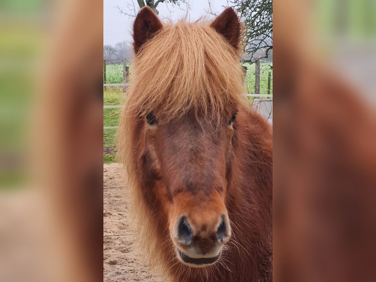 Te koop staat hier een 10-jarige, 1,43 m grote, stabiele en knappe vosmerrie (zonder aftekeningen) Gauti fra Langhusum, met heel veel manen 😀 Gauti is zeer nerveus, 100% betrouwbaar voor in de trailer, op de bak en buitenritten, en heeft bovendien heel comfortabele gangen. Zijn stap is ruim en krachtig, gevolgd door een rustige, lage-tölt, een zachte draf en alles afgerond met een lichte hand voor een prettig rijgevoel. De galop is iets gelopen en kan nog verbeterd worden. Door te uitademen, kan Gauti gemakkelijk afgeremd worden... over het algemeen moet hij vooral gemotiveerd worden, maar hij is zeer meewerkend. Zijn kracht ligt vooral bij buitenritten. Longeren, grondwerk en trailhindernissen zoals een opstap, brug en stangenwerk doet hij kalm en ontspannen. Net zo makkelijk is hij als een vrolijk en perfect handpaard. Hij laat zich graag knuffelen en blijft daarbij rustig staan. Bij ons staat hij probleemloos samen met hengsten en merries in de groepsstal. Tijdens het voeren is hij makkelijk in de omgang; 24 uur weidegang vind ik over het algemeen te veel en zou ik voor Gauti niet aanraden. Ik wens voor Gauti een recreatieve ruiter die hem afwisselend bezig houdt en graag buiten rijdt. Ik heb Gauti op hoefbeslag gezet, in het terrein draagt hij hoefbeschermers. Gauti is gevaccineerd, ontwormd, eczeemvrij en heeft een recente RX met röntgenfoto’s (alles in orde). Zijn tanden zijn in maart 2025 verzorgd en in december 2025 is hij osteopathisch behandeld. Een passende zadel van Eques, samen met andere accessoires, kan eventueel mee worden gekocht. Gauti kan bij ons in de binnenbak of buitenritten uitgebreid getest en leren kennen worden. Voor verdere vragen ben ik graag telefonisch bereikbaar: mobiel 0152/54385267