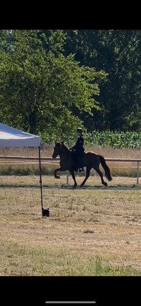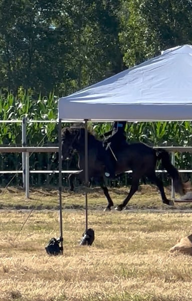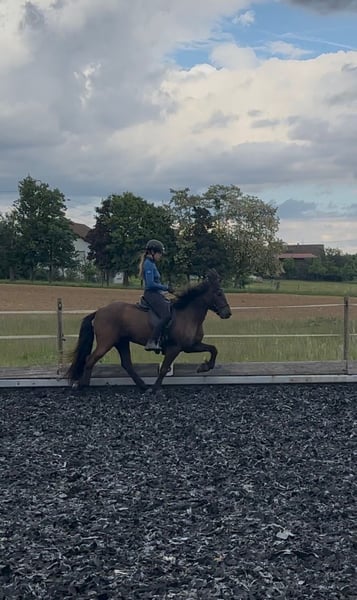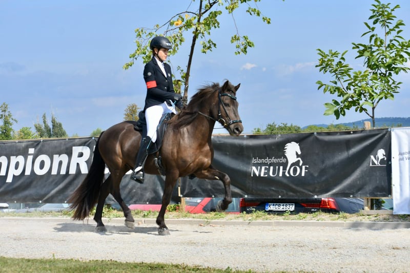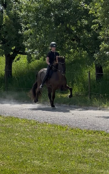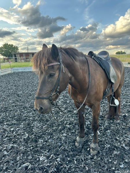 Síríus frá Dallandi Wallach, 1,50m groß, *kräftig gebaut* Farbe: Rappe ohne Abzeichen *2013 in Island Fünfgänger, viergängig geritten V: Arion frá Eystra-Fróãholti 8,91 (Ext 8,39 Re 9,25) !! VV: Sær frá Bakkakoti 8,62 (Ext 7,96 Re 9,05) !! M: Dýrleif frá Dallandi 8,09 (Ext 7,96 Re 8,17) !! Viergängerin MV: Dagfinnur frá Dallandi 7,79 (Ext 7,88 Re 7,71) Viergänger Sein Vater ist DER weltbekannte Arion frá Eystra-Frodholti, welcher die 10 für Tölt & langsamen Tölt und die 9,5 für Pass erhalten hat. Dýrleif seine Mutter erhielt als Viergängerin in ihrer FIZO die 9 auf Trab, Galopp & langsamen Tölt. Síríus ist der perfekte Partner für Reiter *im ambitionierten Freizeitbereich* sowie im Sport. Síríus hat dieses Jahr bereits seine ersten Turniererfahrungen gesammelt und Eiinzelnoten im Tölt und Galopp von 6,0 bekommen. Bei weiterem Training und Routine sind diese noch ausbaufähig. *Besonders hervorzuheben ist, dass Sirius in allen 4 Gängen immer Takt hat, was eine tolle Basis fürs Training oder Ausritte im Wald bietet.* Auch vom Boden ist Síríus gearbeitet hauptsächlich an der Longe und Doppellonge. Hier zeigt er sich sehr lernwillig und kooperativ. Er ist dem Menschen immer freundlich zugewandt, sehr verschmust und liebt krauleinheiten. Síríus ist seit Oktober 2023 in Deutschland und hat leichtes Ekzem entwickelt, welches aktuell mit Decke und minimalem Pflegeaufwand sehr gut im Griff ist. Síríus benötigt einen sicheren und erfahrenen Reiter, der ihm in unsicheren Situationen Vertrauen, Führung und die nötige Sicherheit geben kann. Síríus ist durch geimpft (Tetanus, Influenza und Herpes). Er ist Schmiede und verladefrom. Letzt Zahnarztkontrolle war im Juli 25 und wurde regelmäßig Physiotherapeutisch behandelt.