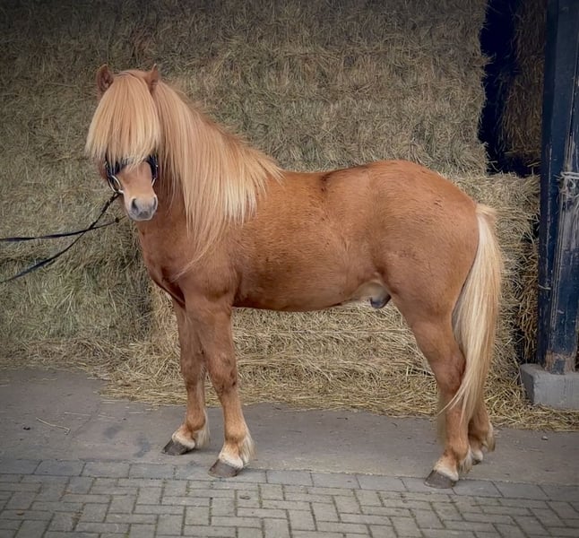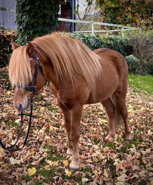 Vörour van de Grenzhöhe is echt een blikvanger! Met zijn prachtige manen en zijn uitgesproken hengsttype trekt deze 5-jarige ruin alle aandacht. Maar niet alleen qua uiterlijk weet hij te imponeren – ook qua karakter is Vörour een echte sympathietrekker. Hij is zeer mensgericht, attent en bovendien bijzonder zachtaardig. Tijdens het poetsen toont hij zich altijd geduldig en vriendelijk, en begroet hij je steeds met een positieve uitstraling. Vörour beschikt over een sterk fundament en meet 1,41 m, wat hem een indrukwekkende verschijning maakt. Hij is gezond, vrij van atopie, regelmatig ontwormd en zijn hoeven worden vanzelfsprekend goed onderhouden. Hij is goed gesocialiseerd opgegroeid in een leeftijdsgevarieerde jongepaardenkudde. Hij toont alle gangen, waarbij vooral zijn ruime en taktvaste basisgangen opvallen. In de vrije beweging laat hij regelmatig tölt en pass zien, met goed tempo, ritme en fraaie bewegingen. Vörour heeft alles in huis om met de juiste opleiding uit te groeien tot een veelzijdig dressuur- en allround paard voor het hele gezin – of met verdere training te schitteren op wedstrijden. Hij is recent aangelegd en is nog rauw. Het zadelmak maken kan bij interesse graag tegen vergoeding worden overgenomen. Voor meer informatie neem ik graag telefonisch contact met u op.