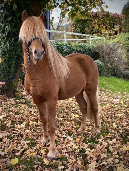 Vörour von der Grenzhöhe ist ein absoluter Hingucker! Mit seinem tollen Behang und seinem ausgeprägten Hengsttyp zieht dieser 5-jährige Wallach alle Blicke auf sich. Doch nicht nur optisch weiß er zu überzeugen – auch charakterlich ist Vörour ein echter Sympathieträger. Er ist dem Menschen sehr zugewandt, aufmerksam und dabei ausgesprochen sanft. Beim Putzen zeigt er sich stets geduldig und freundlich und begrüßt einen immer mit einer positiven Ausstrahlung. Vörour verfügt über ein starkes Fundament und ist mit seinen 1,41 m eine beeindruckende Erscheinung. Er ist gesund, ekzemfrei, regelmäßig entwurmt und seine Hufe sind selbstverständlich gepflegt. Aufgewachsen ist er gut sozialisiert in einer altersgemischten Jungpferdeherde. Er zeigt alle Gänge, wobei seine raumgreifenden und taktsicheren Grundgänge besonders hervorstechen. Im Freilauf präsentiert er zudem immer wieder Tölt und Pass mit gutem Tempo, Takt und schönen Bewegungen. Vörour bringt alles mit, um mit entsprechender Ausbildung zu einem idealen Allround-Reitpferd für die ganze Familie zu werden – oder mit weiterem Training auch im Turniersport zu glänzen. Er wurde frisch gelegt und ist derzeit noch roh. Das Anreiten kann bei Interesse gerne gegen Kostenübernahme übernommen werden. Weitere Informationen gebe ich gerne telefonisch.