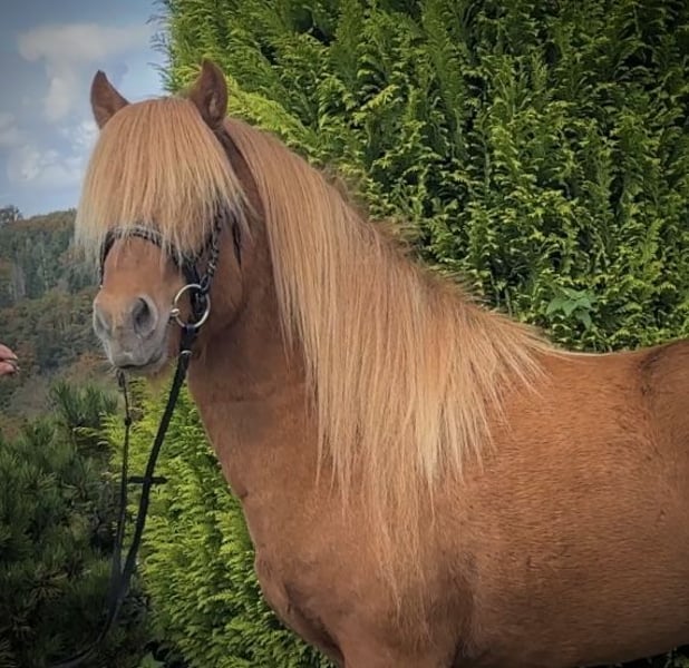 Vörour von der Grenzhöhe is an absolute eye-catcher! With his beautiful mane and pronounced stallion type, this 5-year-old gelding draws all attention. But he impresses not only visually – Vörour is also a real charmer in character. He is very attentive and friendly towards people, always gentle and calm. During grooming, he is consistently patient and kind, greeting everyone with a positive demeanor. Vörour has a strong foundation and, at 1.41 meters, is a striking presence. He is healthy, free of eczema, regularly dewormed, and his hooves are well-maintained. He was raised in a well-socialized mixed-age young horse herd. He demonstrates all gaits, with his ground-covering and rhythmically secure walk and trot standing out in particular. In the free movement, he also regularly shows Tölt and Pass with good tempo, rhythm, and elegant movement. Vörour has everything needed to become an ideal all-round riding horse for the whole family with proper training – or to shine in competitive riding with further training. He has recently been backed and is still in a rough state. Starting his training can be arranged upon request, with costs covered. I am happy to provide further information by phone.
