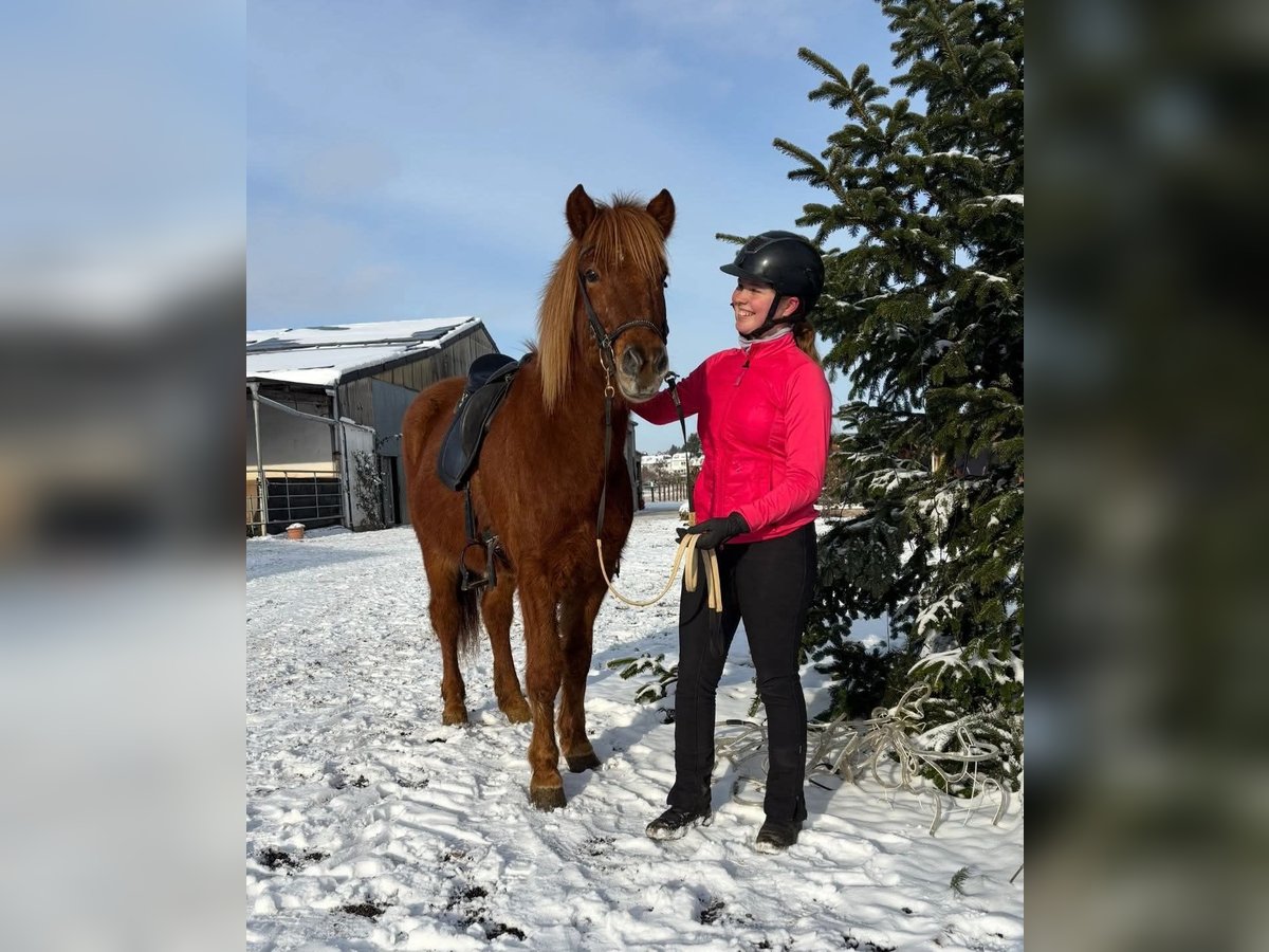 Rubin - toller Isländer zum weiter ausbilden😊 Rubin befindet sich seit Kurzem in der Ausbildung zum Reitpferd und zeigt sich dabei mutig, lernwillig und verlässlich! Er zeigt gleichermaßen viel Trab und Tölt und ist aktuell eher viergängig einzuordnen. Er hat flüssigen, raumgreifenden Trab den er bereits sehr gut am Zügel geht. Sein Tölt ist locker, elastisch und bereits jetzt zeigt sich, dass er eine sehr gute Gangqualität entwickeln wird. Der junge Wallach ist total menschenbezogen und macht in der täglichen Arbeit richtig Freude: die perfekte Mischung aus sprudelnder Arbeitsbereitschaft und geduldigem Lernen. Er ist artig beim Schmied, kennt Hunde, Traktoren und alles Gewusel am Ponyhof. Rubin steht am Anfang seines Reitpferdeseins und wir sind uns absolut sicher dass er zu einem Allroundtalent mit Traumcharakter wird...(und auch schon ist!) Daher ist er aktuell für einen geübten Reiter geeignet. Da er sich aber stetig in der Ausbildung befindet, kann sich das ändern.