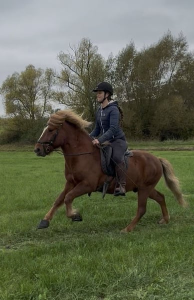 Ísak ist ein 6 Jahre alter Isländer Wallach, Dunkelfuchs. Er hat einen stabilen und guten Bau. Nicht nur sein Aussehen ist wunderschön, auch sein Charakter ist einwandfrei. Er wird ein toller freundlicher und vorallem treuer Partner. Ein extrem menschenbezogenes Pferd, welches sich jeden Tag wieder auf seine Menschen freut. Ich könnte ihn mir daher in der Zukunft auch als Familienpferd vorstellen. (Weitere Einblicke zu ihm bei Instagram:Buttonhorses) Er ist sozial und brav im Umgang und mit anderen Pferden. Genügend Temperament und fleißig aber nicht überdreht. Er arbeitet frisch mit und liebt es neue Dinge zu lernen und zu entdecken. Selbst nach einem langen Ausritt würde er die Strecke freiwillig noch ein zweites Mal laufen. Ich bilde/habe ihn schonend ausgebildet. davor ist er artgerecht in einer Herde aufgewachsen. Er lässt sich unteranderem auch frei im Roundpen reiten und hört in jeder Situation ganz fein auf Stimme. In der Boden und Freiarbeit hat er gute Grundkenntnisse. Ins Gelände geht er in der Gruppe sowie alleine problemlos. Auf dem Platz bietet er eine sehr schöne Haltung an. Er ist zeigt alle 4 Gangarten gleichmäßig, hat unterm Reiter viel Tölt. Bocken, Treten, Beißen sind für ihn absolute Fremdwörter! Er ist rundum gesund und hat keine Allergien, Ekzem oder sonstiges. Kennt Offenstall, Weiden sowie (nachts)Boxenhaltung. Ísak ist uns sehr ans Herz gewachsen, aber nun suchen wir für ihn das schönste Zuhause wo er seine gerechte Aufmerksamkeit bekommt. Bei Intresse und/oder Fragen einfach schreiben. Videos vorhanden. Probereiten möglich.