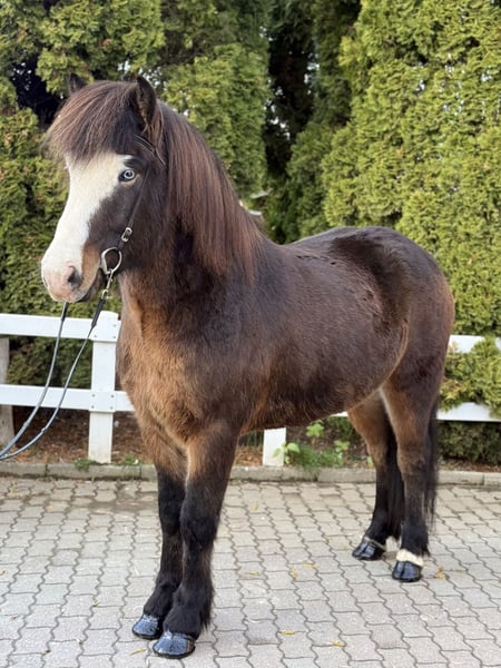 Lukku-Blesi du Háleggstöðum Hongre, 1,50 m au garrot 🤩 *2019 en Island Quatre allures avec Tölt sans fin AKU et radiographies disponibles ✅ Dents traitées en décembre 2025 ✅ Vacciné, ferré, déparasité ✅ Père : Bruðgumi du Háleggstöðum Mère : Skelfing du Háleggstöðum Sire : Strákur de Vatnsleysu Grand-père : Nökkvi de Kjalarland (8,29) (Ext 8,09 / Re 8,41)‼️ Lukku-Blesi est un hongre ultra fiable, qui porte son cavalier où il veut. Après une séance de Tölt détendu en terrain varié ou pour se détendre lors d’une longue promenade au pas, il est parfait. Le week-end, il peut suivre un stage ou même participer à une compétition – Blesi est toujours partant ! Monté en quatre allures, il montre un bon pas, un bon trot, un galop sautillant et un Tölt toujours régulier, facile à gérer. Même un cavalier expérimenté en Tölt pourra le demander et en profiter sans difficulté. 😌 Il appartient à la catégorie « BOMBPROOF » et reste calme face à presque tout. Avant de partir au galop, il préfère souvent s’arrêter et examiner un « objet inconnu » de près – après tout, cela pourrait être comestible 😅 Un hongre de six ans, grand, magnifique, qui mérite qu’on lui trouve une nouvelle vie ! Un « Wow, qu’il est beau » de la part des autres cavaliers du manège est garanti pour ce cheval exceptionnel ! Si vous souhaitez faire connaissance avec ce beau hongre ou le tester, n’hésitez pas à nous contacter pour une visite à A-5221 Lochen am See.